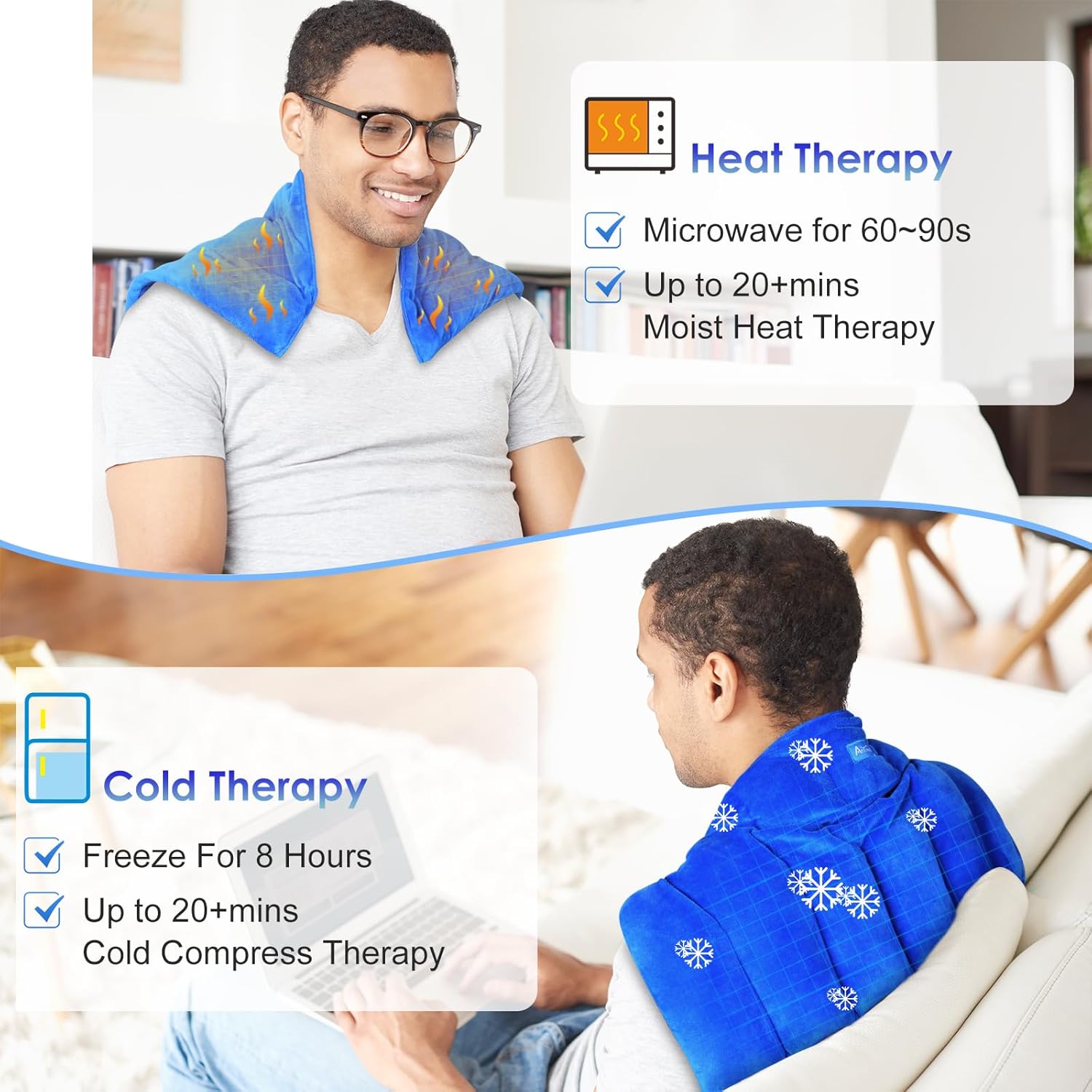 Atsuwell Large Microwave Heating Pad for Back, 22 x 13 '' Full Back Heat Pad Microwavable with Warm and Cold Compression, Reusable Microwavable Heating Pads for Neck Shoulder, Blue
