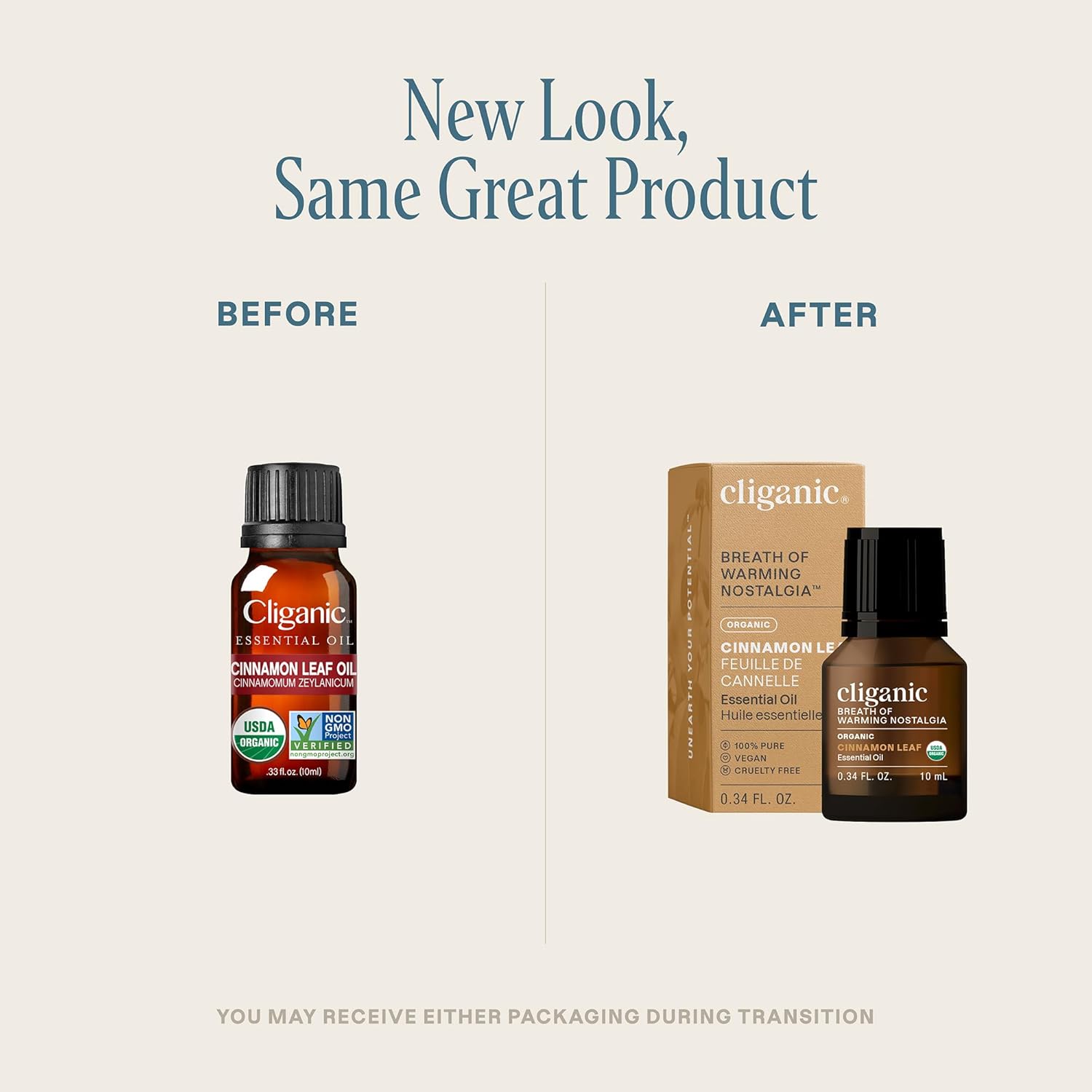 Cliganic Organic Cinnamon Leaf Essential Oil, 100% Pure Natural for Aromatherapy | Non-GMO Verified (Packaging May Vary)