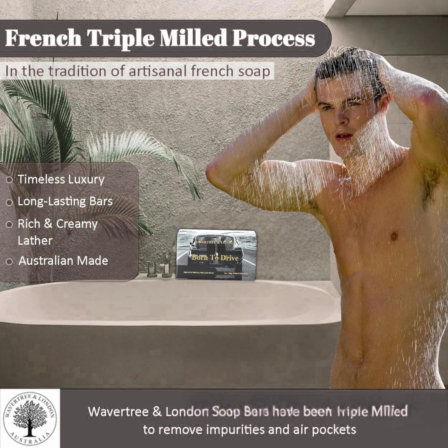 Wavertree & London Born To Drive Scented Natural Soap Bar, 7oz Moisturizing French Triple Milled Soap Bar for Women & Men