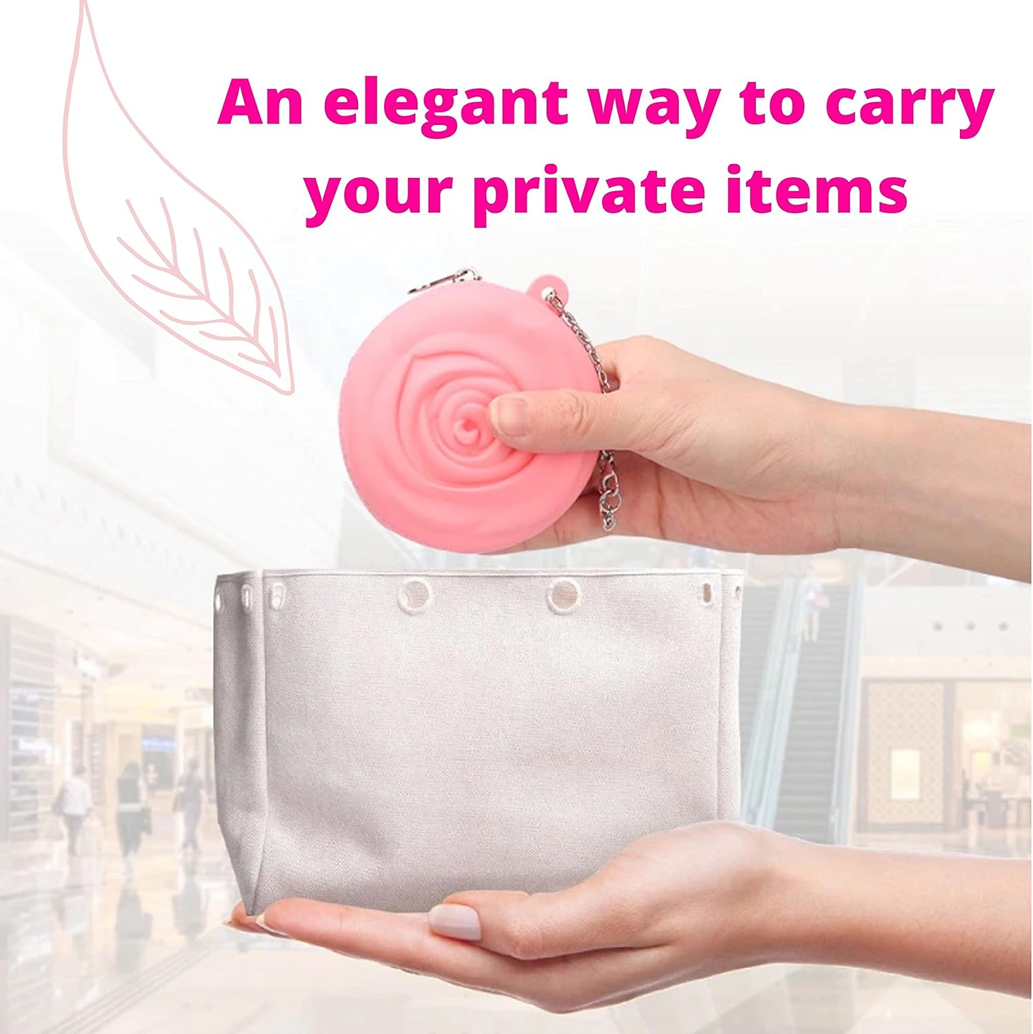 - [Rose Design + Multi Use] Looking for a discreet but elegant way to carry your menstrual cups during your period? Here is a beautifully engraved rose hang bag for all your sanitary and hygiene care products. Handheld size (3.5 x 3.5 x 1.5 inches | 9 x 9 x 4.5 cm) with lovely rose design.