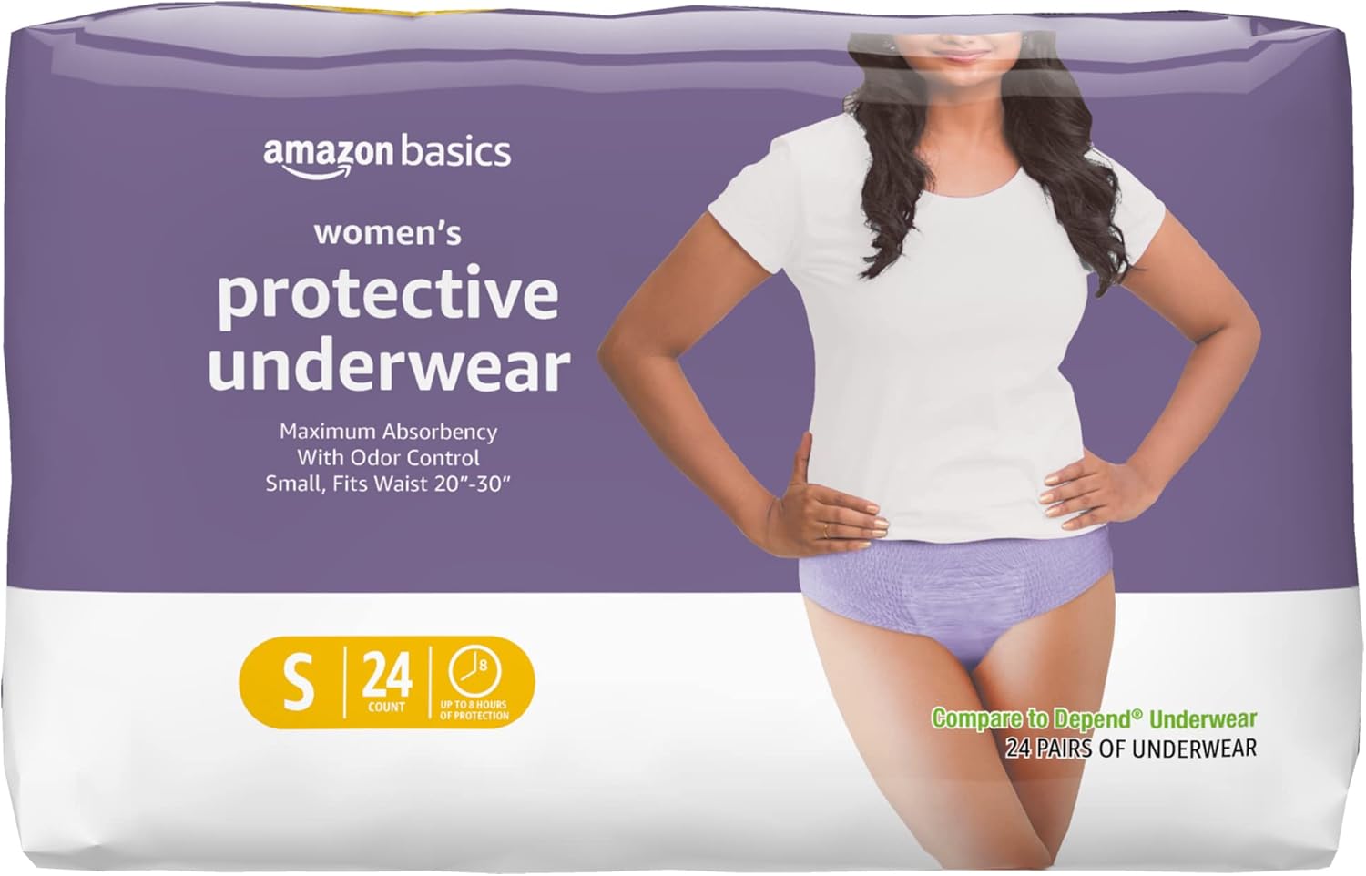 Amazon Basics Incontinence Underwear for Women, Protective, Disposable, Postpartum, Maximum Absorbency, Small, Lavender, 24 Count
