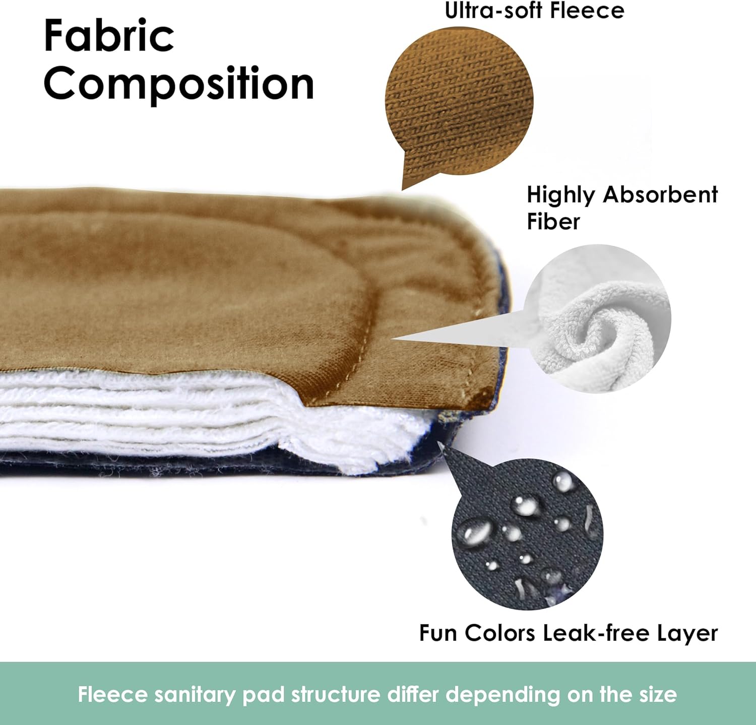- Multi-Purpose Panty Liners: Our washable pads menstrual are ideal as period panties, postnatal maternity pads or washable light flow cloth urinary incontinence pads for teens, women and men. Great for travel, indoor and outdoor, exercise, or daily use. Washable pads menstrual coming with a leak-free PUL wet bag, the handle with snap is easy for you to carry or hang everywhere. Just use or wash, fold it, nobody will know what it is, no more embarrassing