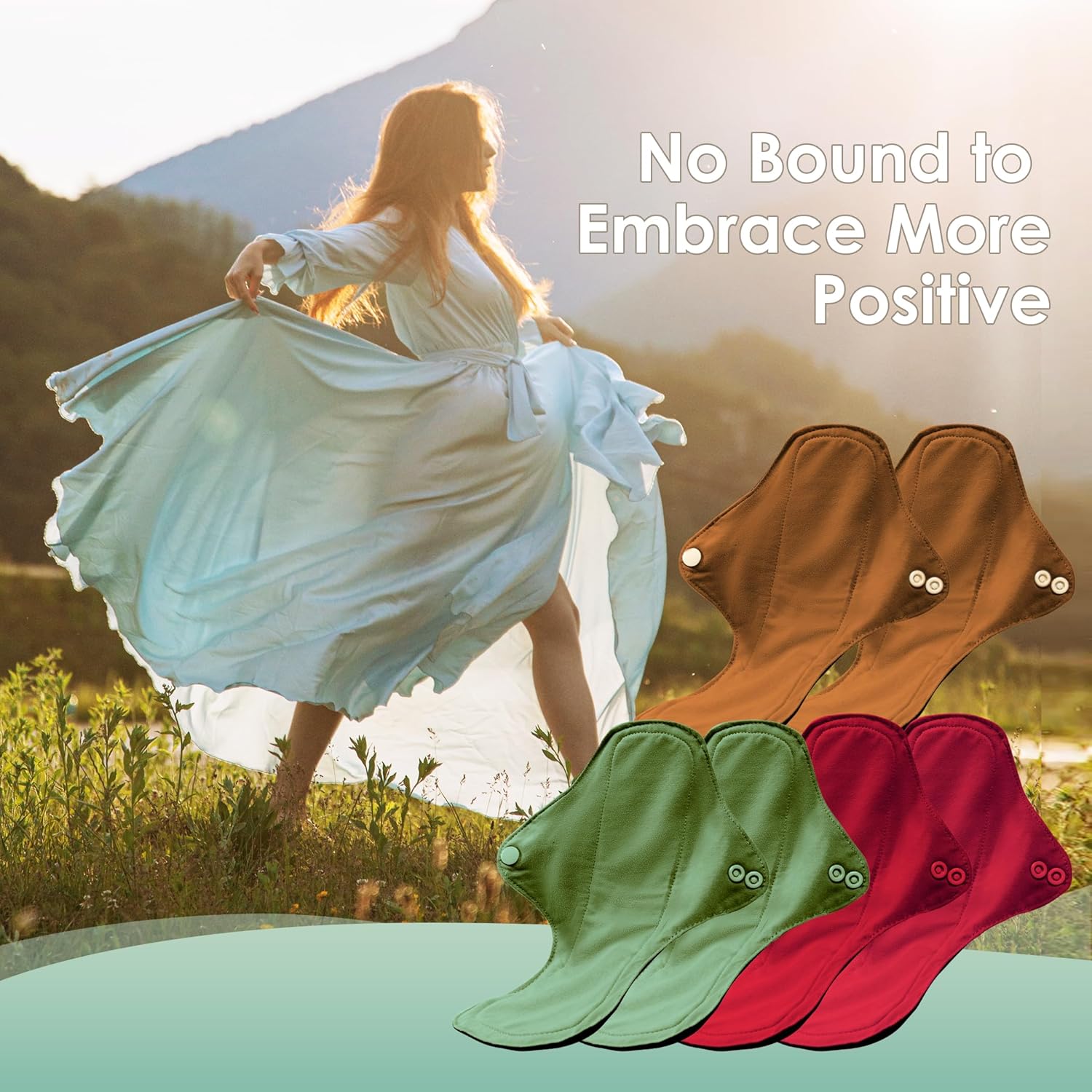 wegreeco 6 Pcs Reusable Menstrual Pads, Ultra Absorbent Cloth Pads for Heavy Flow, Sanitary for Teens, Women, Nonslip Panty Liners + Bag (Aqua, Burgundy, Coffee, M)