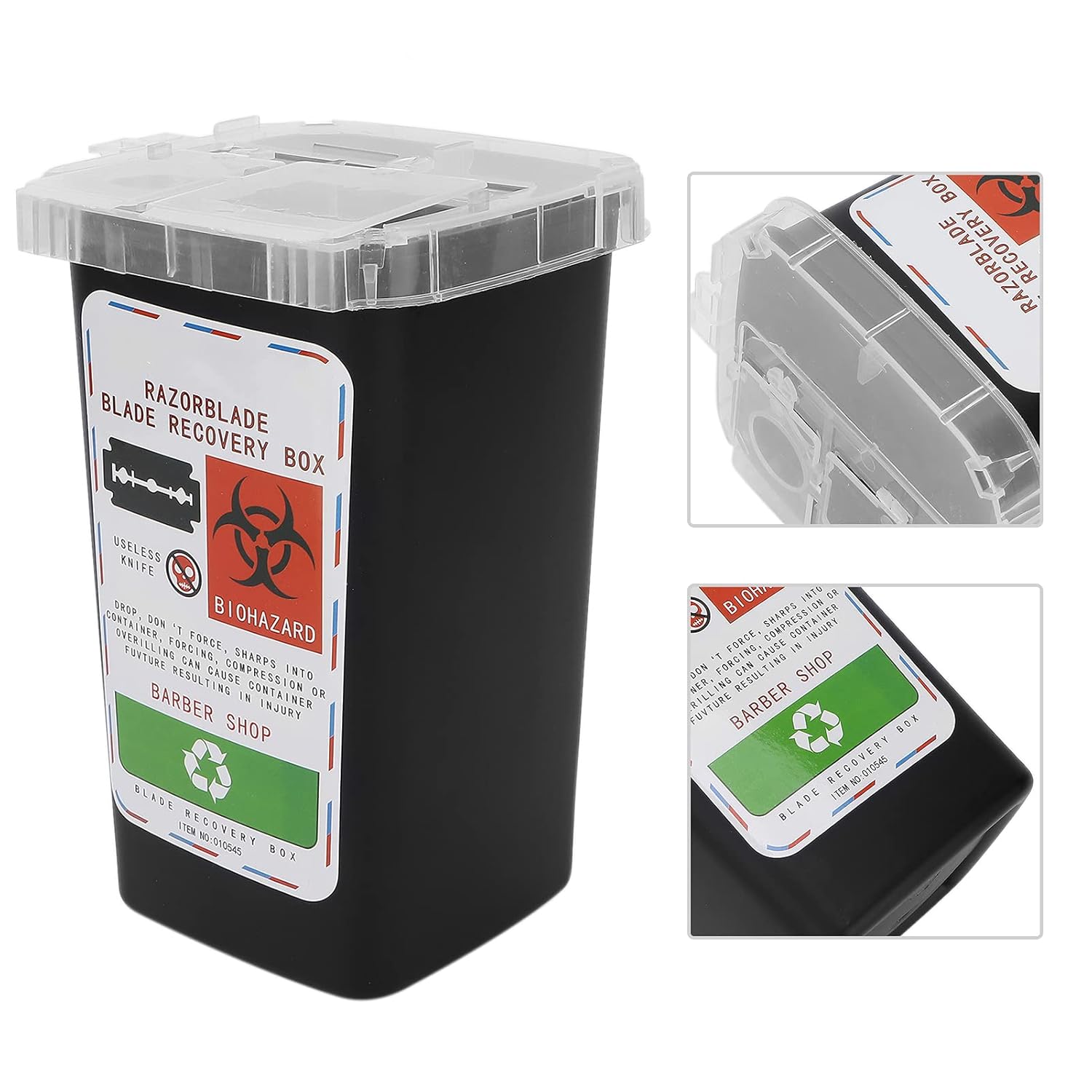 Disposal Blade Container, Strong Sealing Shaving Knife Blade Disposal Collect Box Safety Razor Case for Men Barbershop Hair Salon(Black)