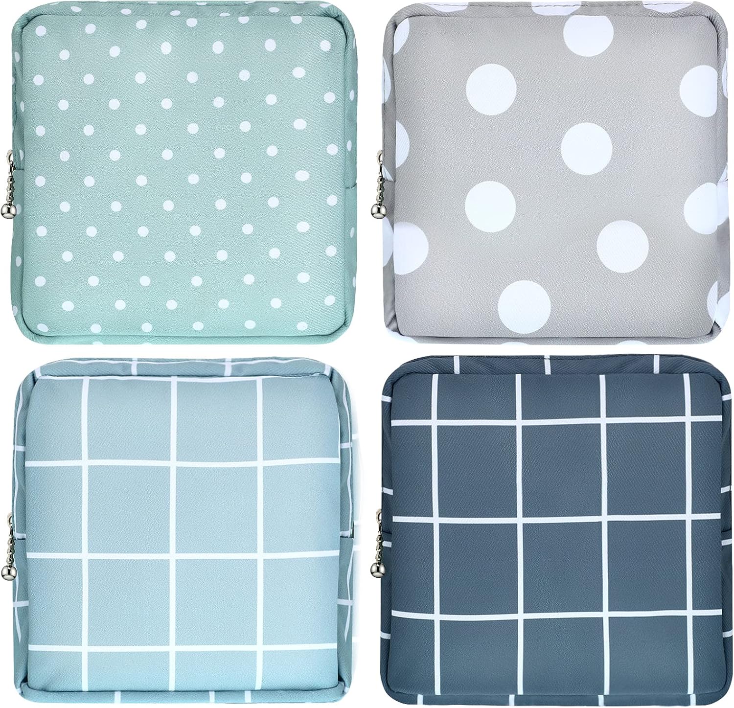Frienda 4 Pieces Sanitary Napkin Storage Bag Menstrual Pad Nursing Pad Holder Portable Menstrual Period Sanitary Pouch Zipper Tampons Collect Bags for Teen Girls Women Ladies(Basic Style)