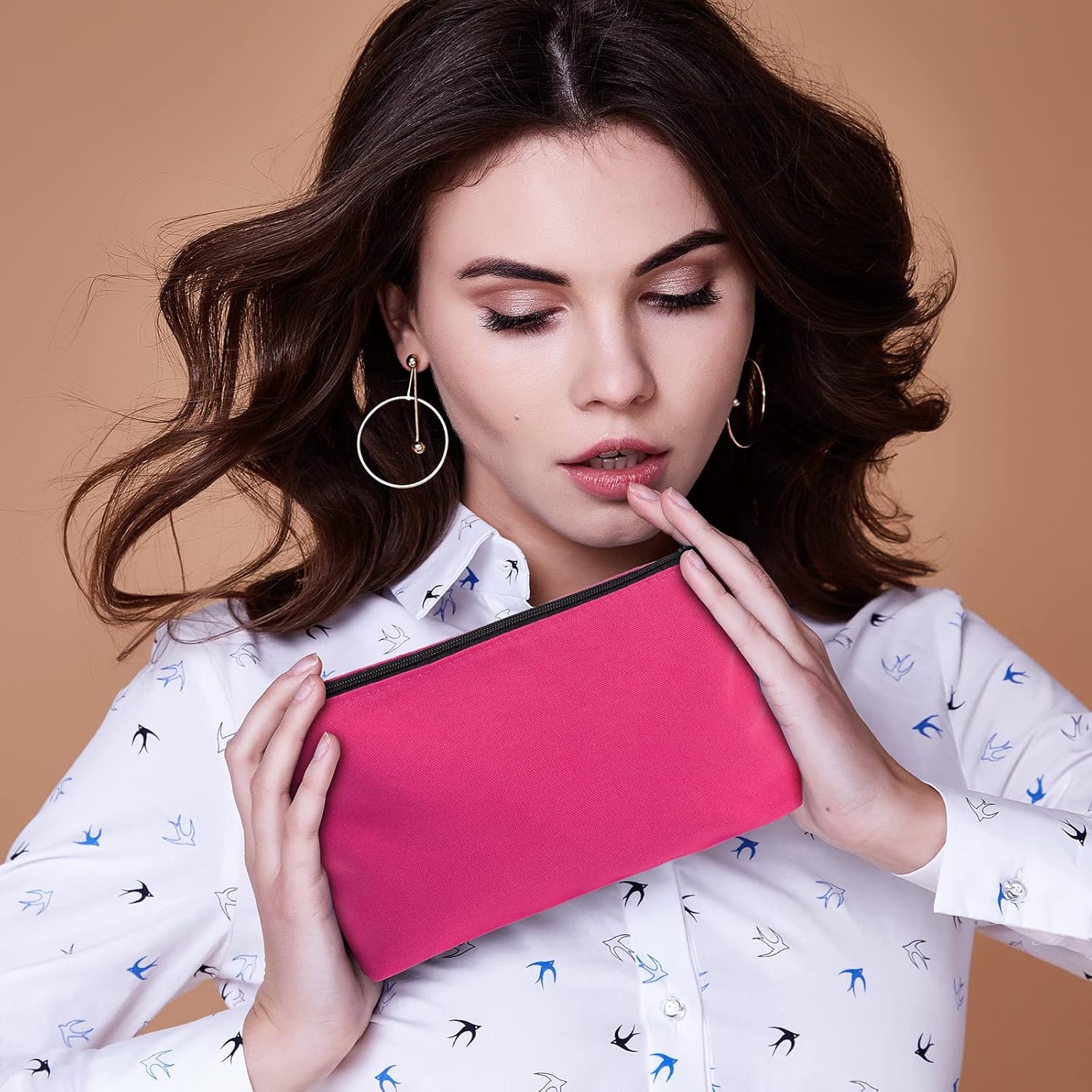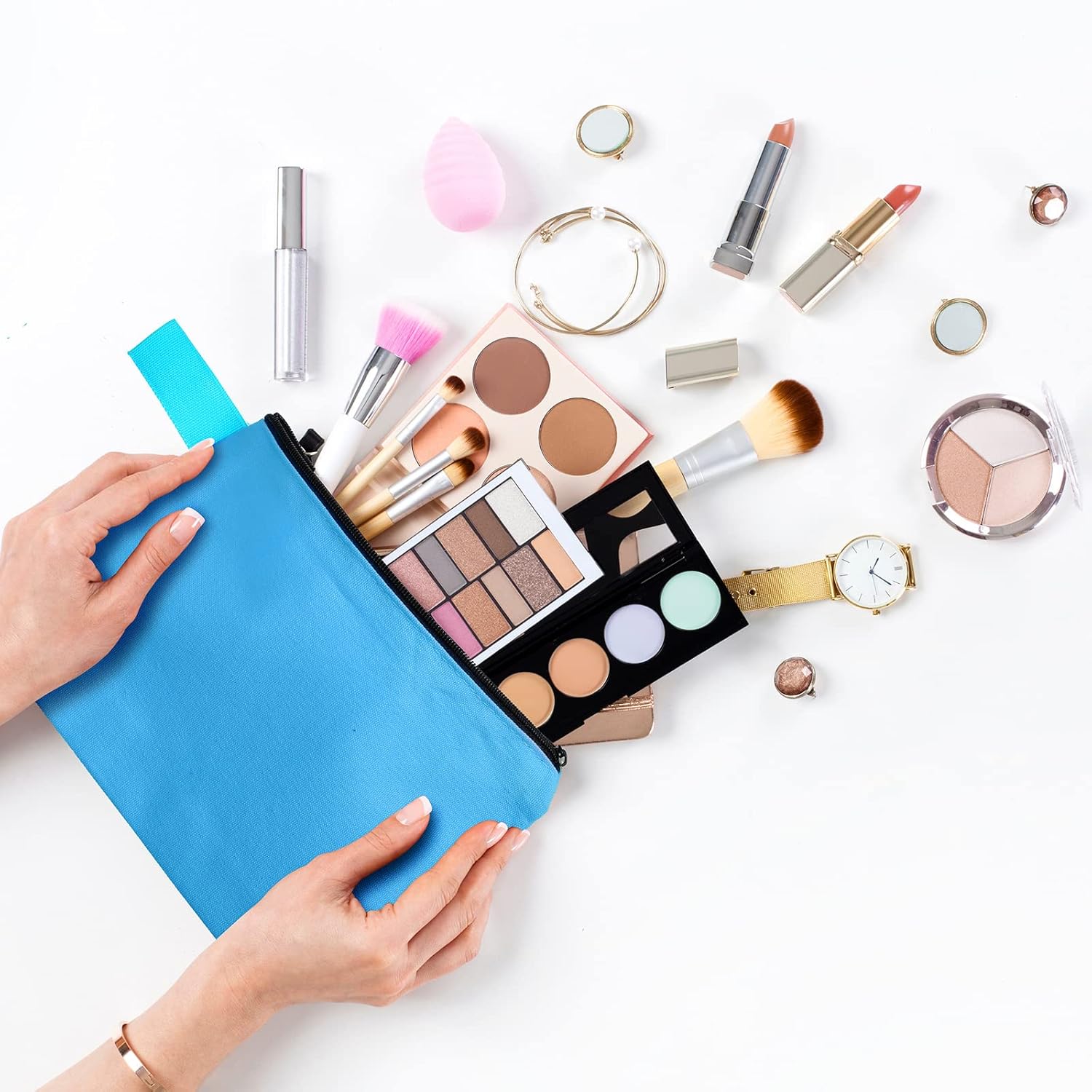 - Suitable Size: each travel makeup bag measures approx. 8.7 x 5 x 1.8 inch, portable and convenient for you to carry and store in your handbag, suitable for cosmetics, such as makeup brush, lipstick, eyebrow, eye shadow, eyelash curler, air cushion, powder, but also for daily items as pens, keys, cards, phones, toiletries and so on