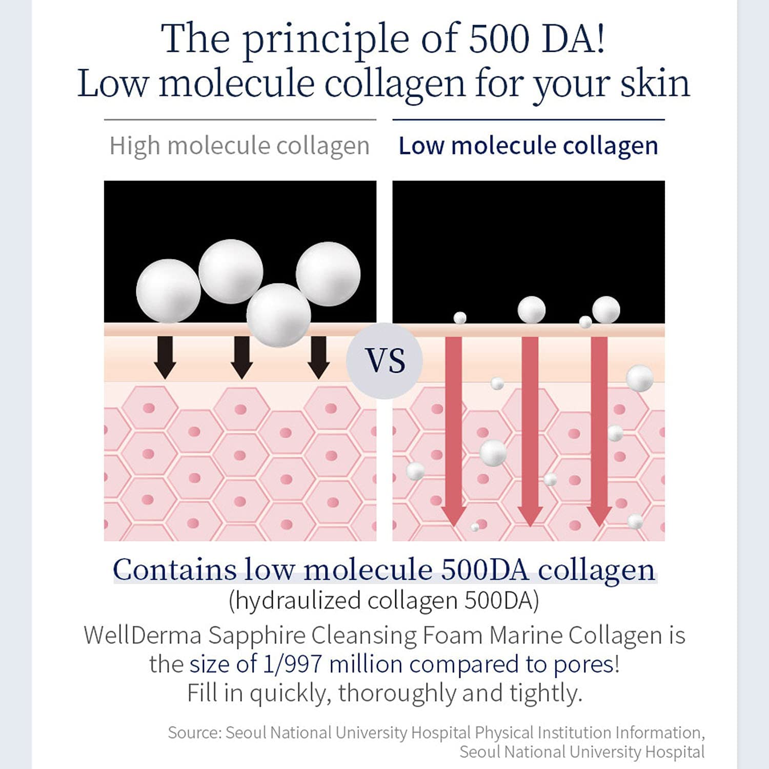 WELLDERMA Sapphire Collagen Cleansing Foam, 150mL – Gentle Facial Cleanser with Hydrolyzed Collagen & Glycerin, Moisturizing Creamy Lather