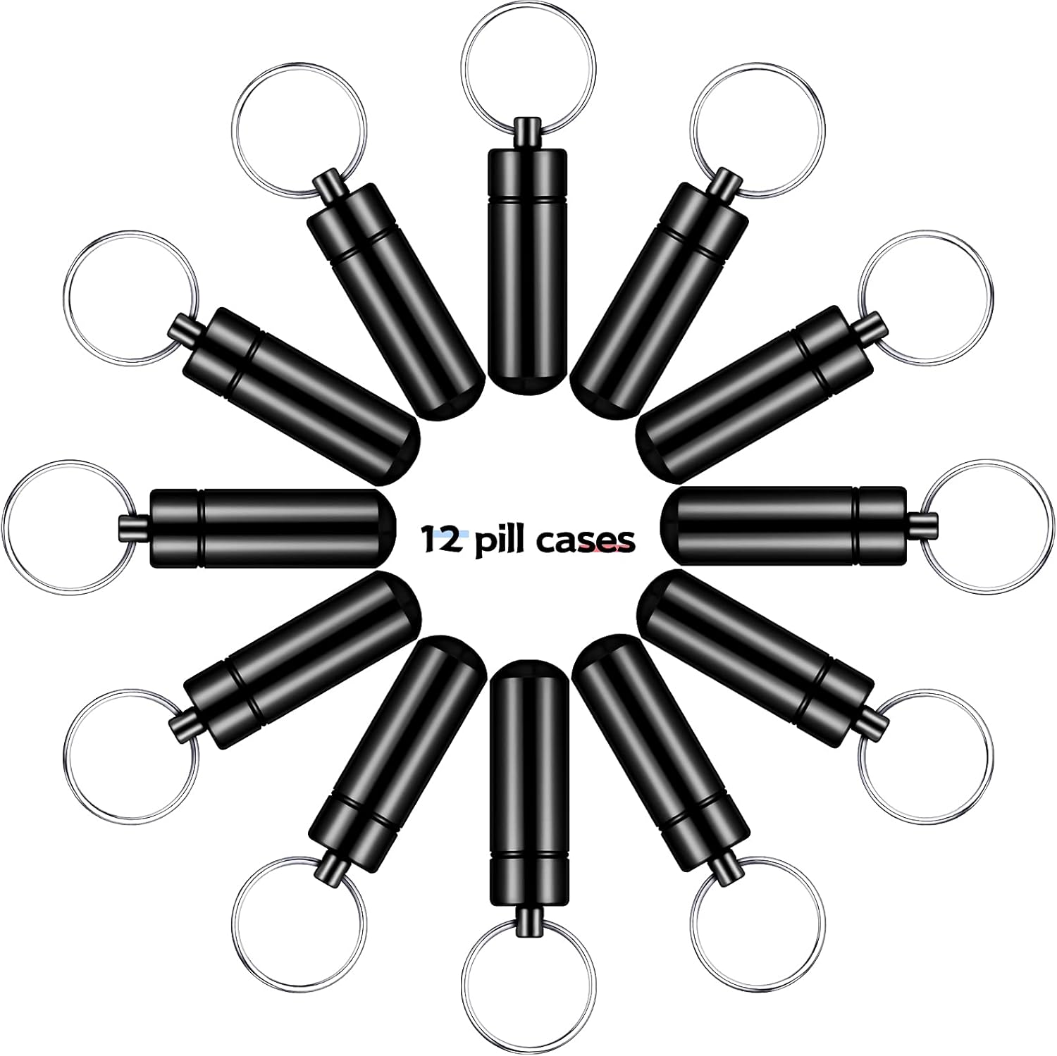 Patelai 12 Pcs Portable Keychain Pill Holder Mini Pocket Pill Case for Men Women Aluminum Geocache Containers Waterproof Metal Medicine Bottle Organizer for Outdoor Camping Travel(Black)