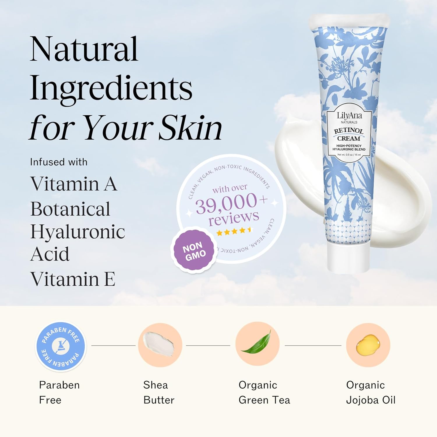 • ✨Clean, Vegan & Cruelty-Free Skincare You Can Trust: LilyAna Naturals is committed to clean beauty. Our retinol face moisturizer is made in the USA with no parabens, artificial fragrances, or harsh chemicals—just effective, plant-based ingredients.