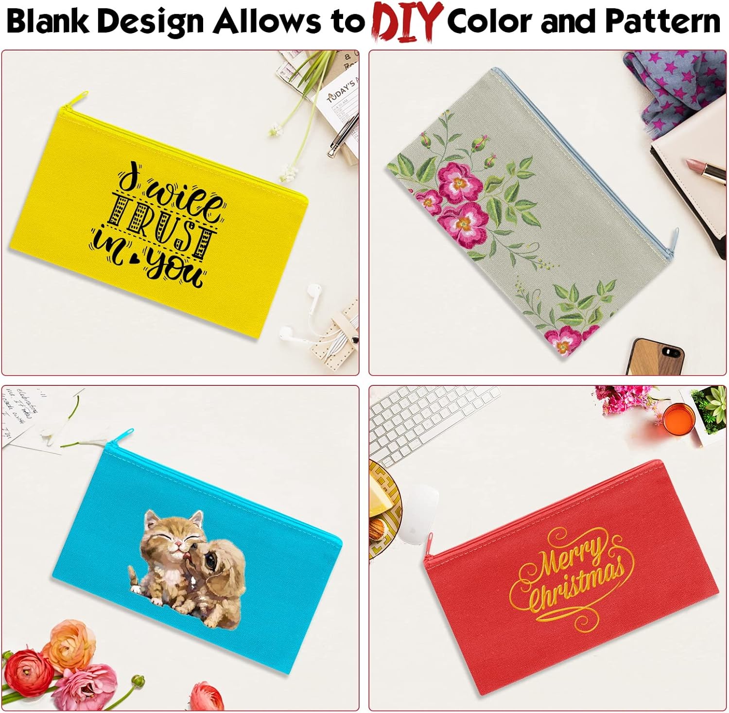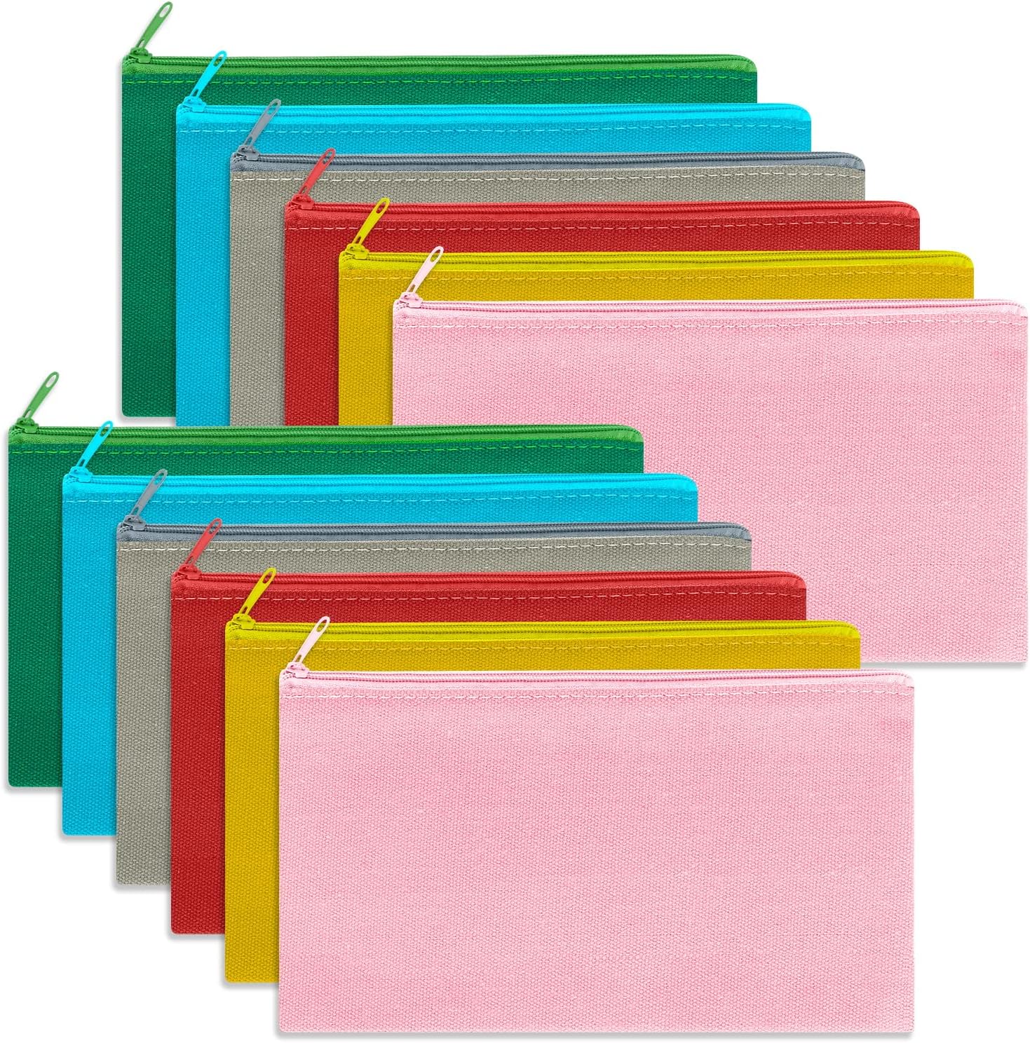 12 Pieces Cotton Canvas Makeup Bag, Multipurpose Cosmetic Bag with Zipper Travel Toiletry Pouch, Blank DIY Craft Bag (Multicolored A, S)