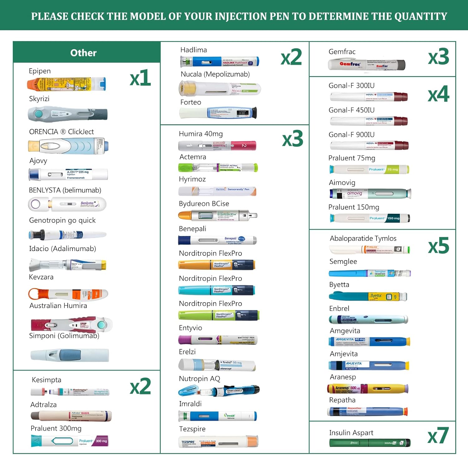 - UNIVERSAL COMPATIBILITY FOR MOST PENS:Drawing from extensive market experience, our company offers models that fit up to 95% of popular brands and sizes of injection pens. You're guaranteed to find the perfect match for your lifestyle! For detailed compatibility, please refer to the table in the product images. If your pen model isn't listed, contact our 24-hour customer service for personalized assistance