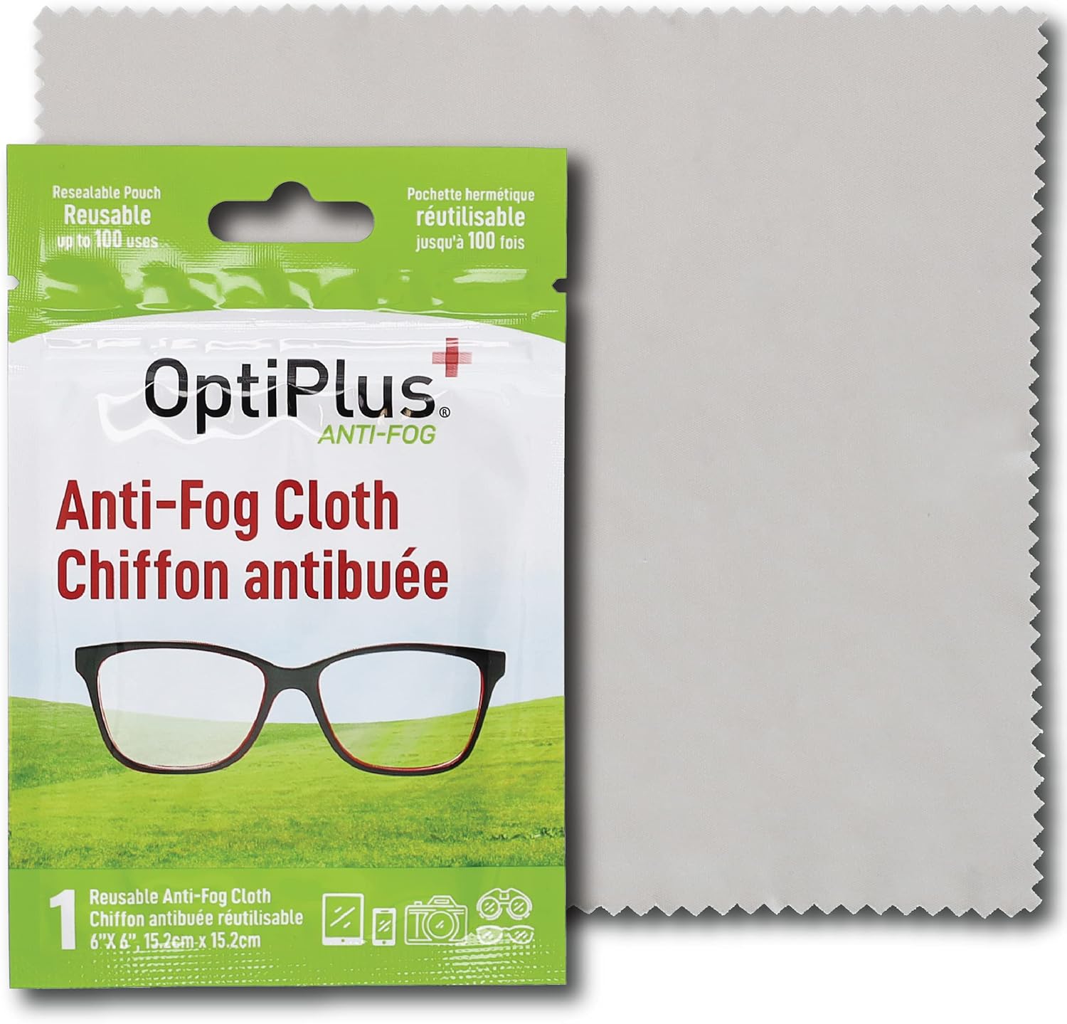 OptiPlus Anti Fog Cloth for Eyeglasses, Goggles, and Shields | Premium Reusable Anti-Fog Treatment | 1 Cloth 100 uses | Anti-Fog for All Lenses