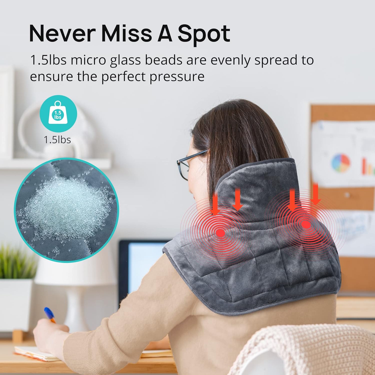 Heating Pad, Weighted Heating Pads for Cramps, 14'' x 20'' Electric Heating Wrap for Neck and Shoulders, 4 Heat Settings, Fast-Heating Technology, Auto Shut-Off (Gray)
