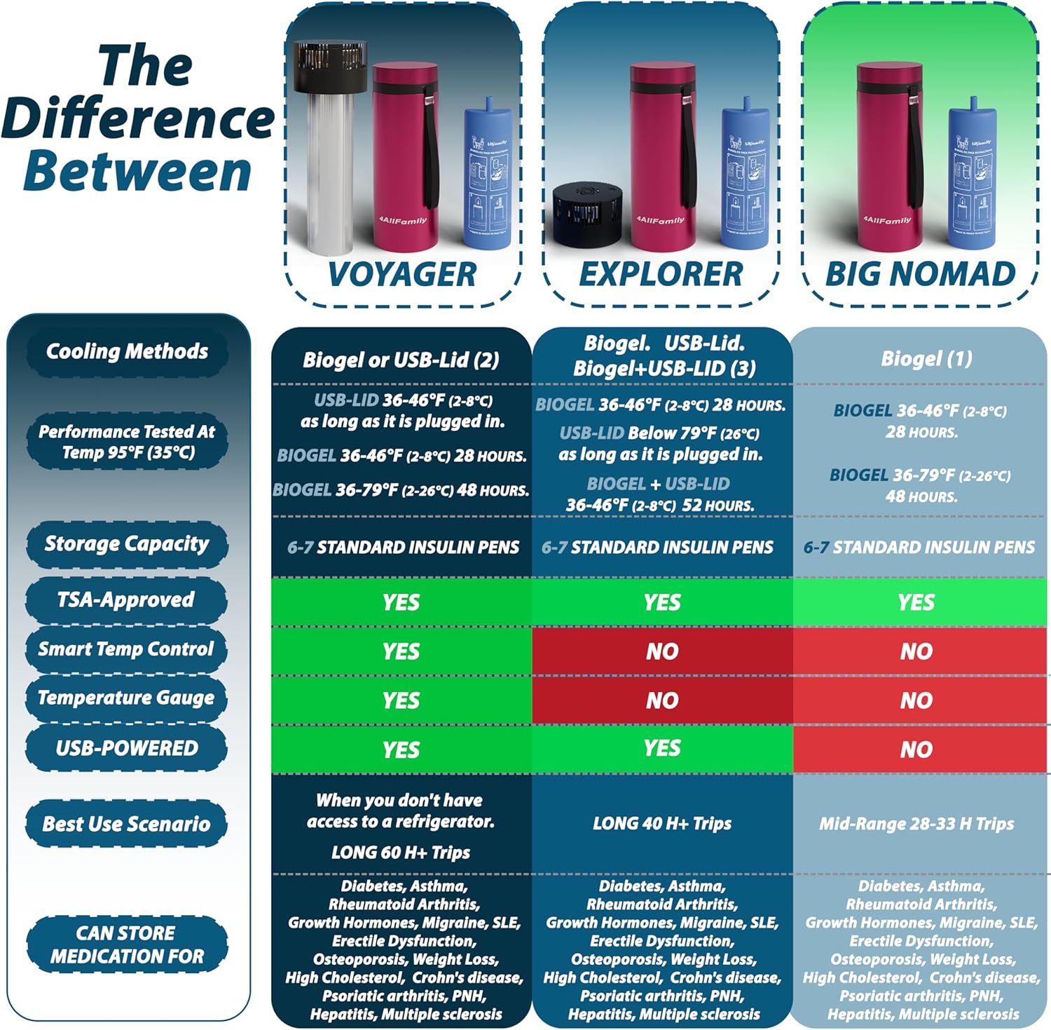 - ADVANCED BIOGEL TECHNOLOGY: Eliminate melted water packs & frozen meds, our Biogel freezes at 36°F to keep a stable range, protecting medicine from damage; this medicine cooler for travel TSA approved design is reusable and practical