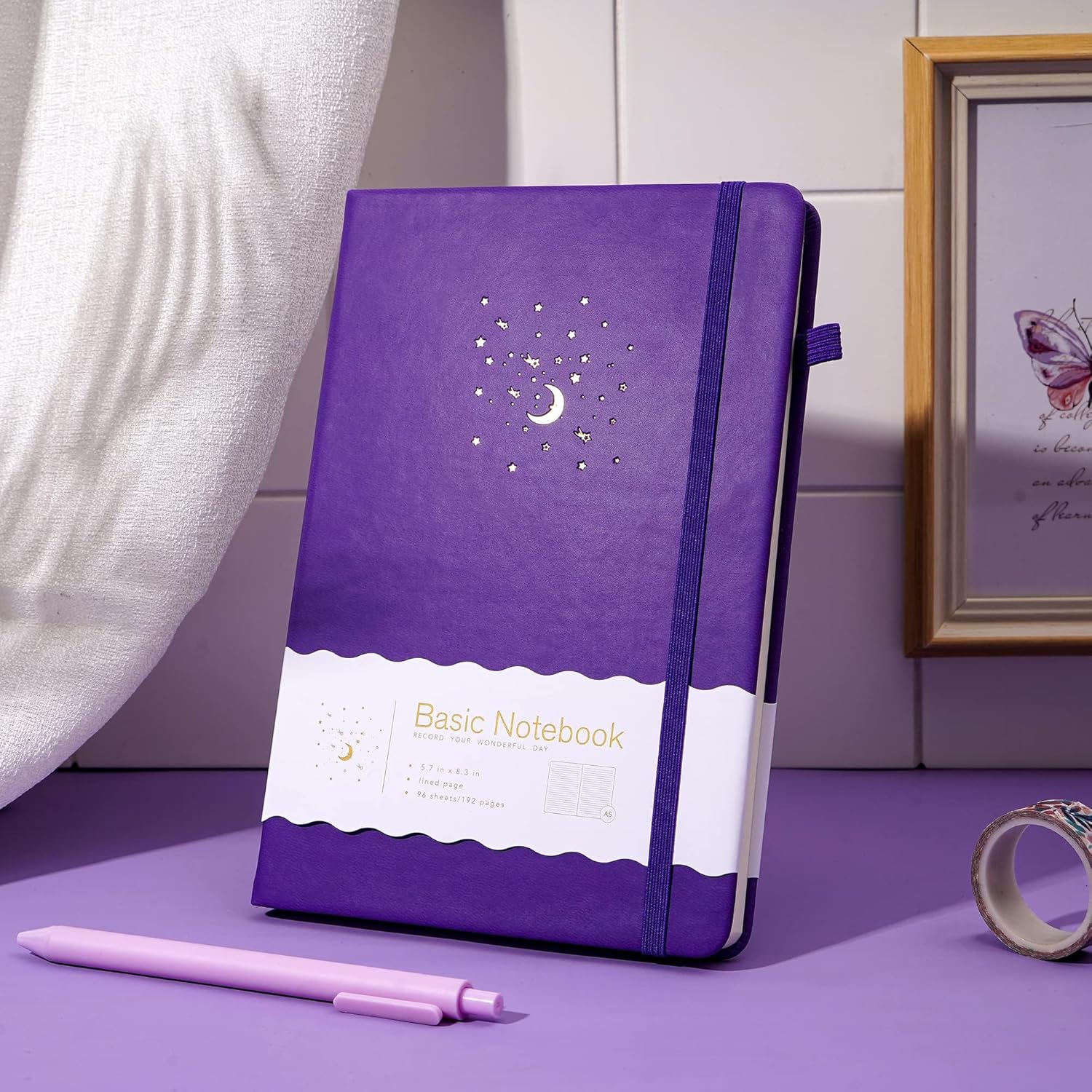 CAGIE Lined Journal Notebook for Work, Hardcover Notebook Journal with Pen Loop, A5 Notebook Journal Cover, Medium 5.7" x 8.3", (Purple Ruled), Gifts
