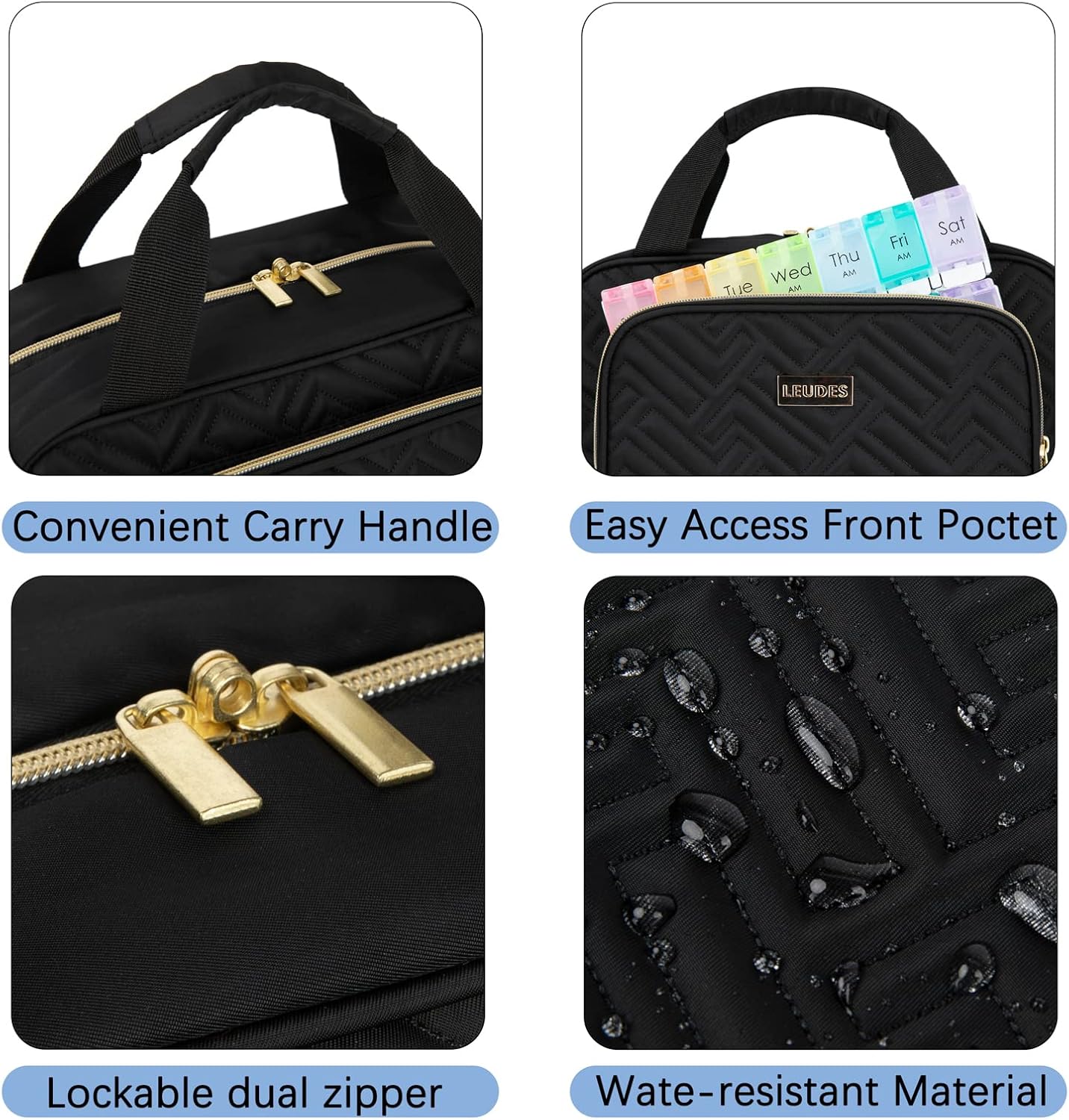 - Durable & Safety: Water resistant,durable fabric and well-padded design to keep full bag's shape and provide great protection. Sturdy stitching and heavy duty material and it can stand up many items. Equipped with a double zipper which can be locked, you can choose the lock you like to lock it, ensuring your medication is safe.