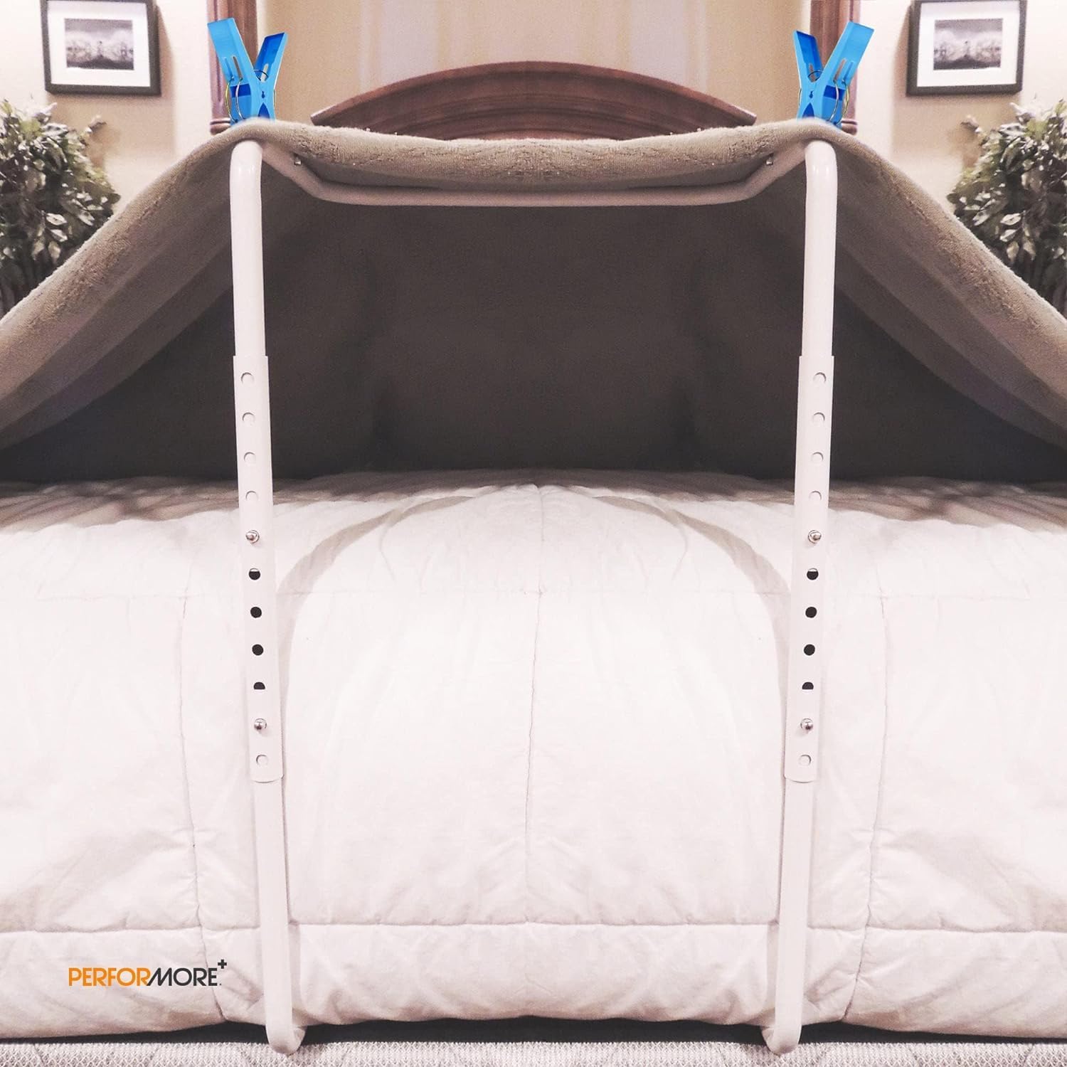- 𝗥𝗲𝗹𝗶𝗲𝘃𝗲𝘀 𝗽𝗿𝗲𝘀𝘀𝘂𝗿𝗲 – holds the blankets/linens up off the feet and legs while resting in bed and is ideal for those with Arthritis, Restless Legs, Neuropathy, CRPS, Foot Cramping, Sensitive Toes, Burns, Surgery Recovery. No more pain or discomfort while you sleep because our blanket lifter keeps the weight of the linens from your sensitive skin and feet while still providing you coverage.