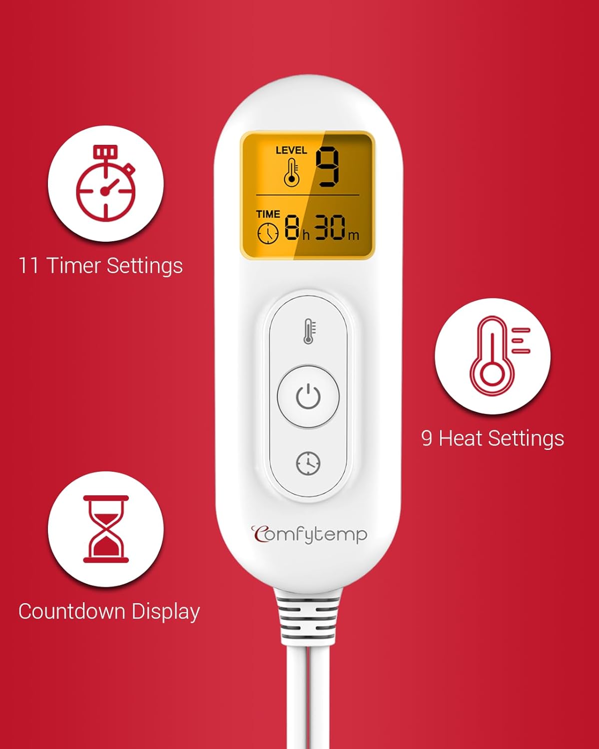 - Countdown Display & Backlight Design: Countdown will remind you of the auto-off time, which helps you control heat therapy time. The backlight design provides convenient visibility for nighttime usage.