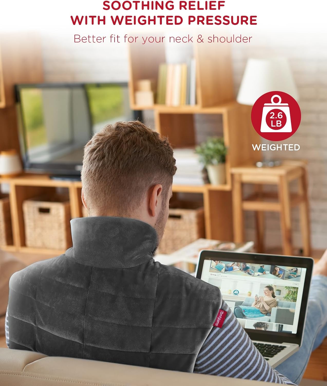 Heating Pad for Neck and Shoulders and Back, Comfytemp Weighted Electric Heat Pad for Pain Relief, 2.6lb Large Heated Wrap, 9 Heat Settings, 11 Auto-Off, Women Men Birthday Gifts Gray