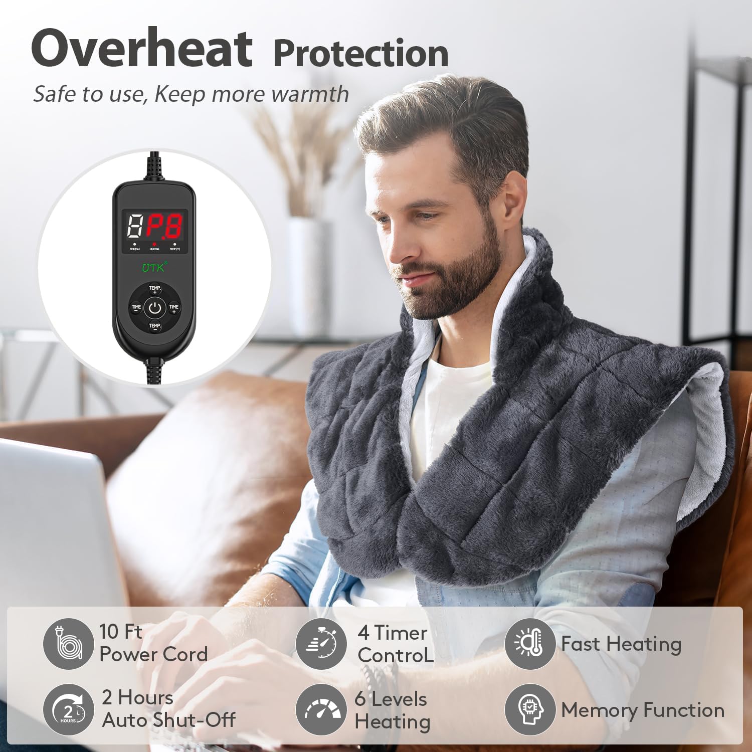 - Larger and more fitting size: designed according to the structure of the human body, it fits the neck and shoulder curves, making it more comfortable to wear. 24*20 large size, 2 inches more than other products, adjustable strap design, suitable for different body shapes, no matter fat or thin. And the neck extension design allows your neck to enjoy the beauty of heat therapy. The light weight of 1.2lb is comfortable even for elderly parents, and can be given as a gift to mother