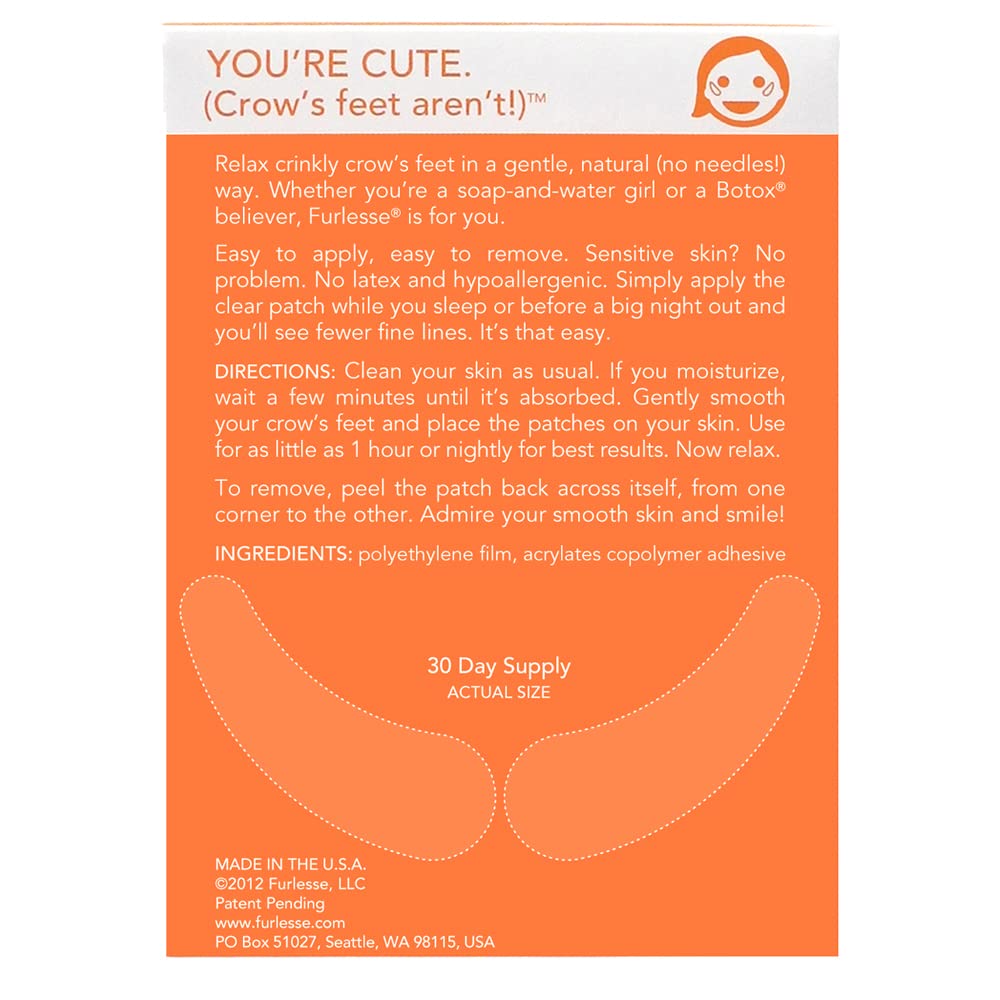 - Non-invasive Wrinkle Patches: Our wrinkle patches provide a natural, non-invasive option to relax facial lines and wrinkles. Each box of Furlesse eye patches contains a 30-day supply, including 60 patches. Take control of your skincare journey today