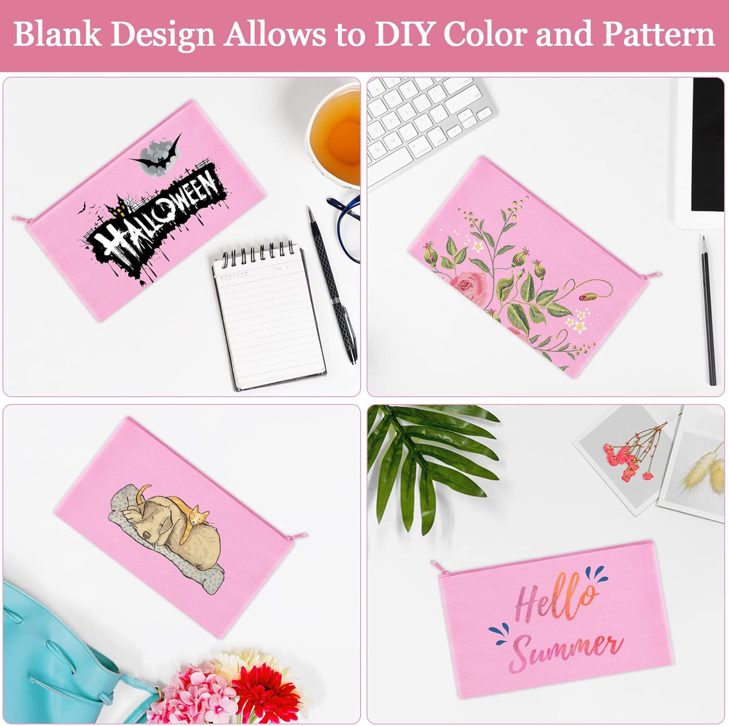 12 Pieces Cotton Canvas Makeup Bag, Multipurpose Cosmetic Bag with Zipper Travel Toiletry Pouch, Blank DIY Craft Bag (Pink, S)