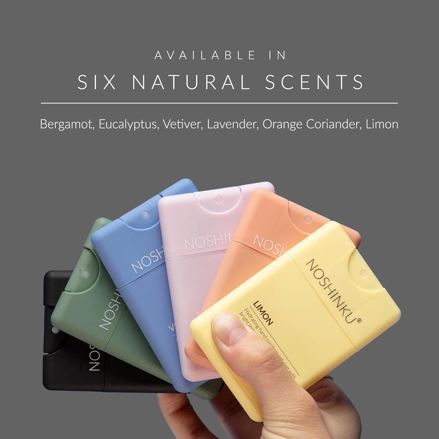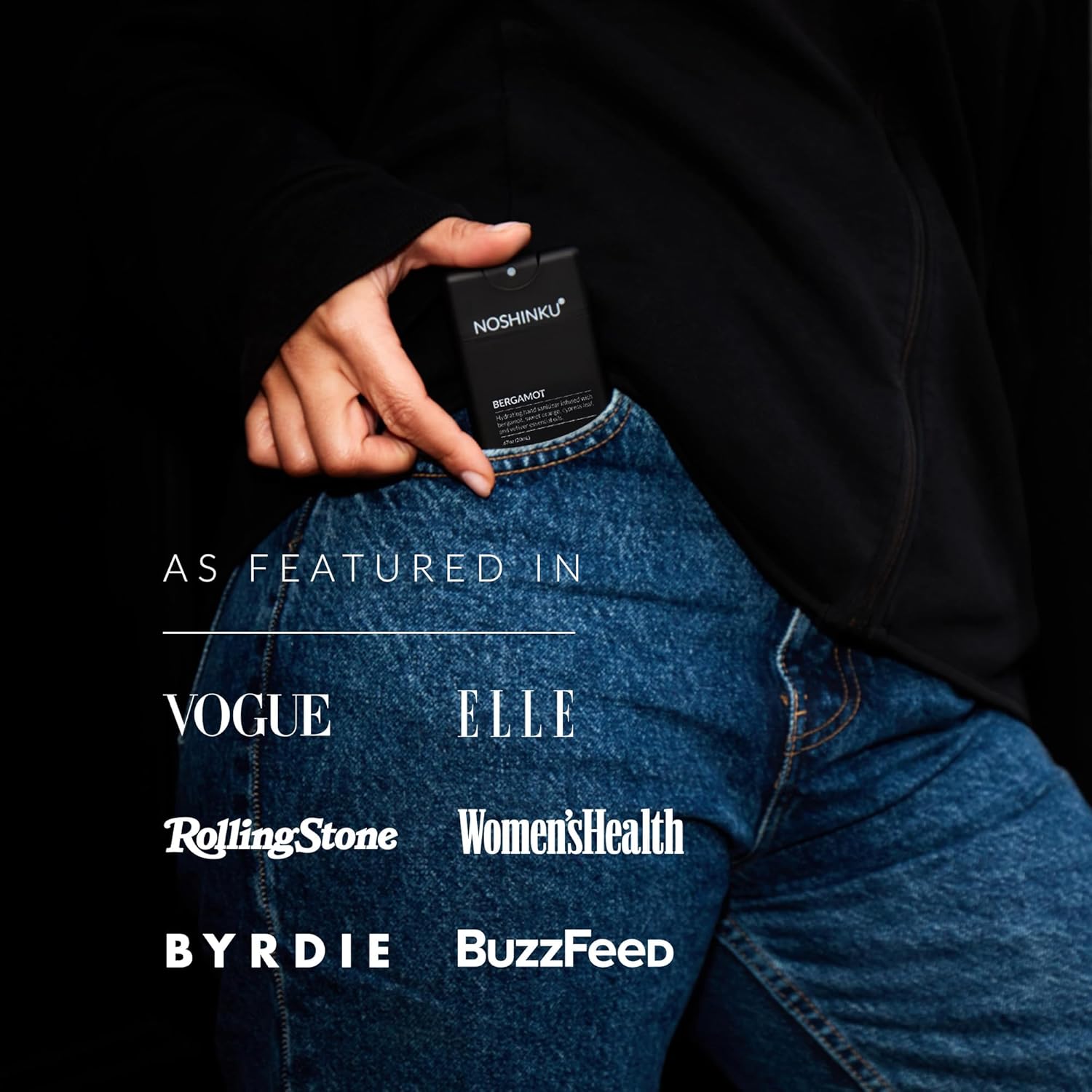 Noshinku - Refillable Hand Sanitizer Bergamot 3-Pack, Travel Size Spray with Hydrating Botanical Oils, Natural Ingredients, All Natural Fragrances, Sugarcane Derived Alcohol, No Parabens, No Dyes
