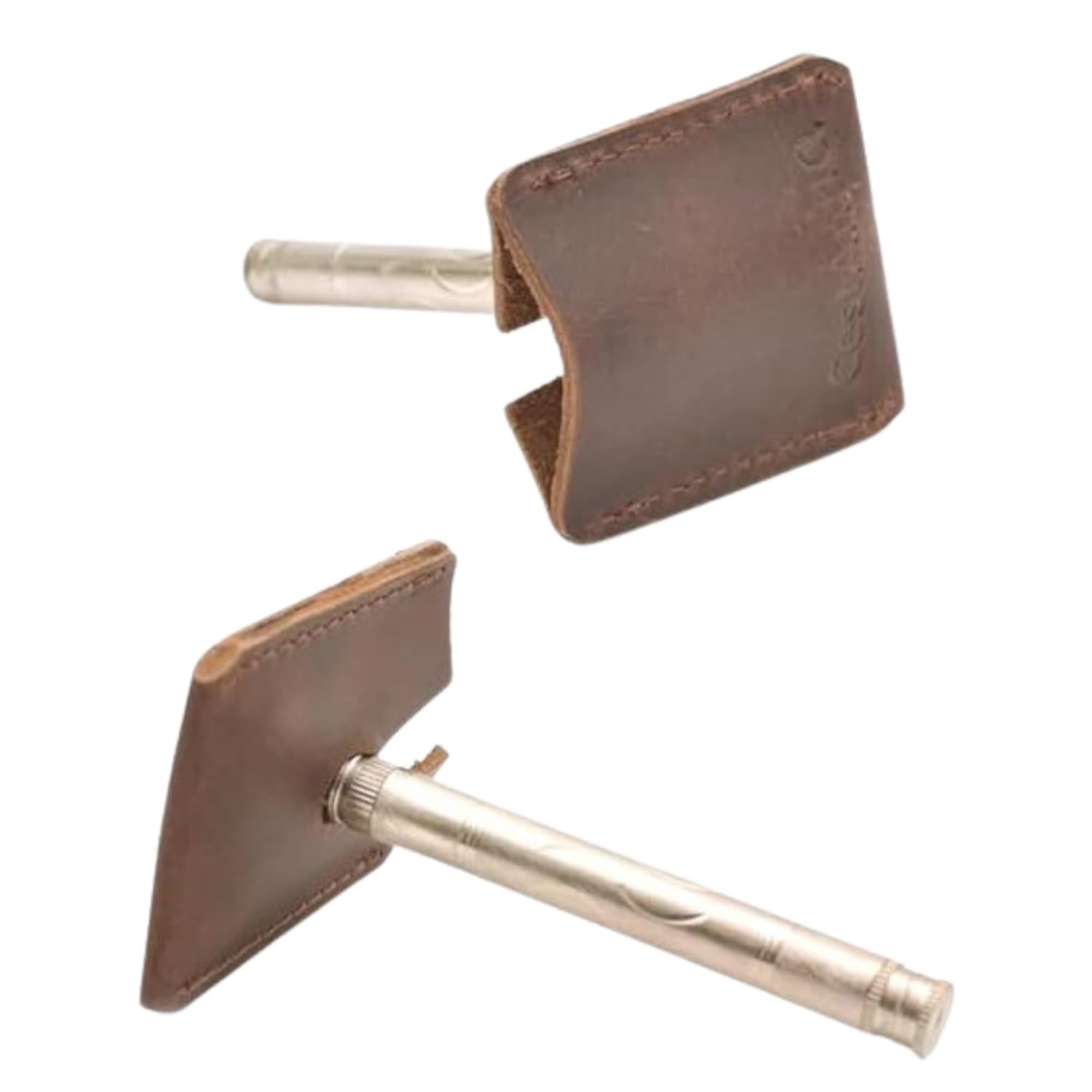 - Secure Closure: After shaving, simply insert your razor into the case and slip the hole over the brass metal rivet to keep it firmly in place, avoiding any accidental contact with the blade.