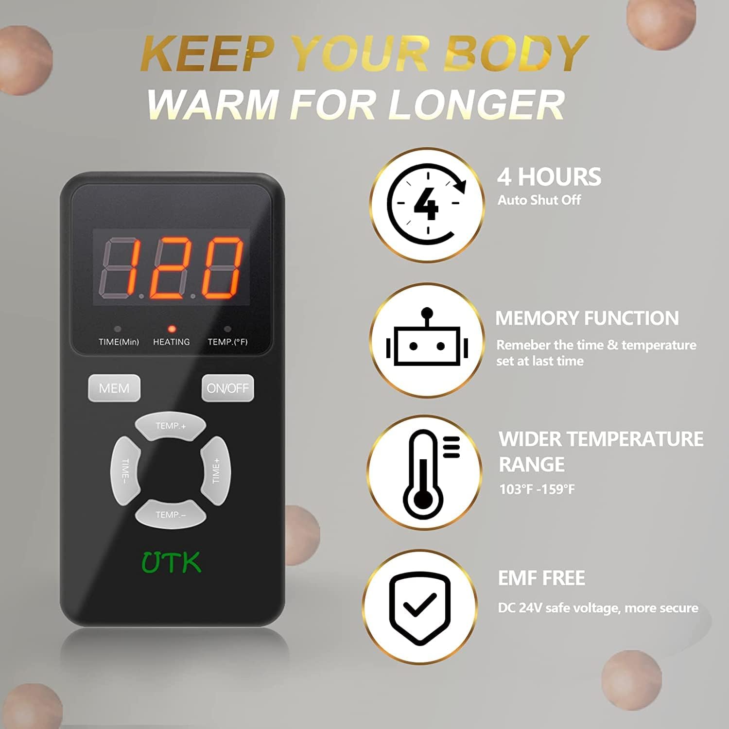 - 【HEAT THERAPY FOR NECK SHOULDERS】: UTK neck shoulder heating pad Built-in Carbon Fiber heating wire, when heating up, the infrared pad would emit far-infrared rays, deep into human tissue,help your neck and shoulder and shoulde blade in a healthy way.