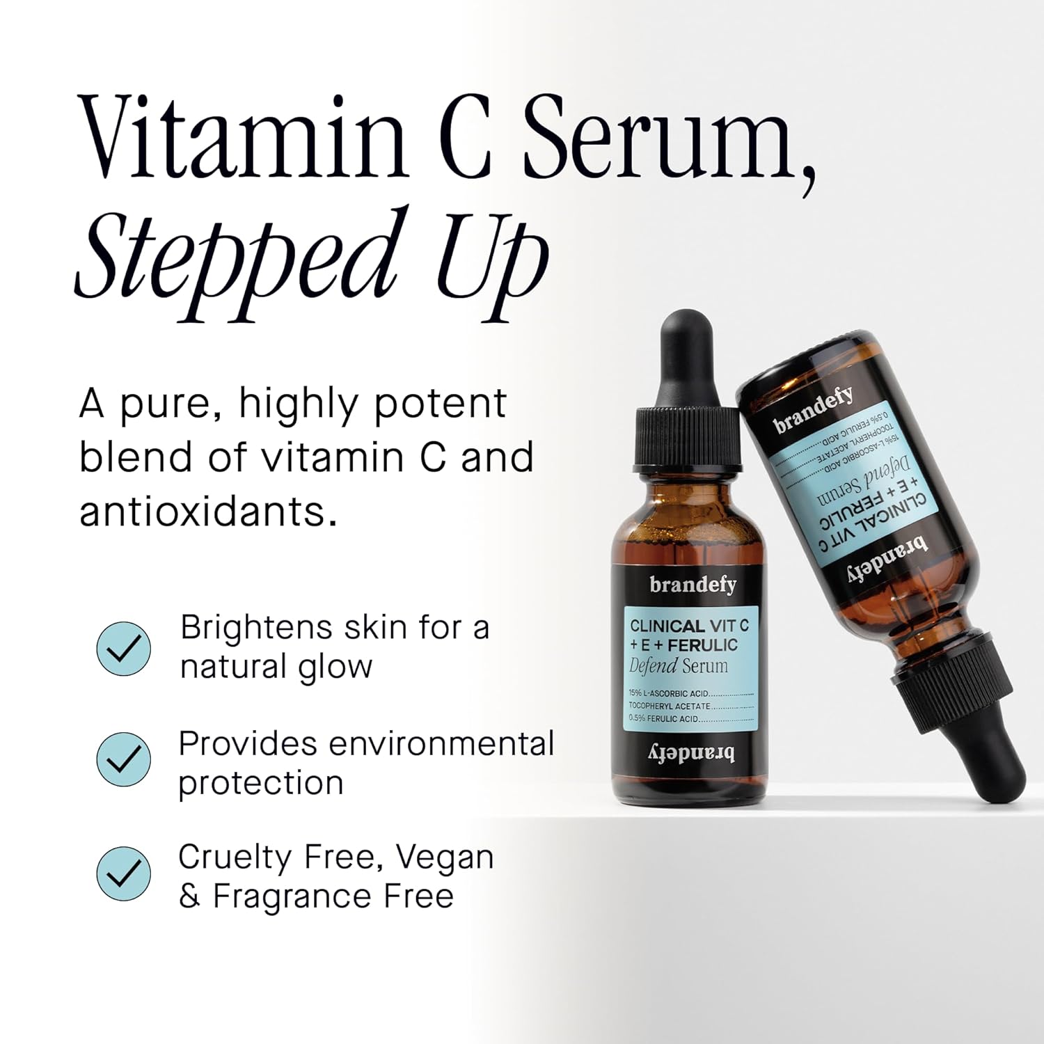Brandefy Vitamin C Face Serum 15% L. Ascorbic Acid, Ferulic Acid .5% + Vitamin E for Self Care and Beauty, Face Dark Spot Corrector and Anti Aging 1oz, Made In The USA