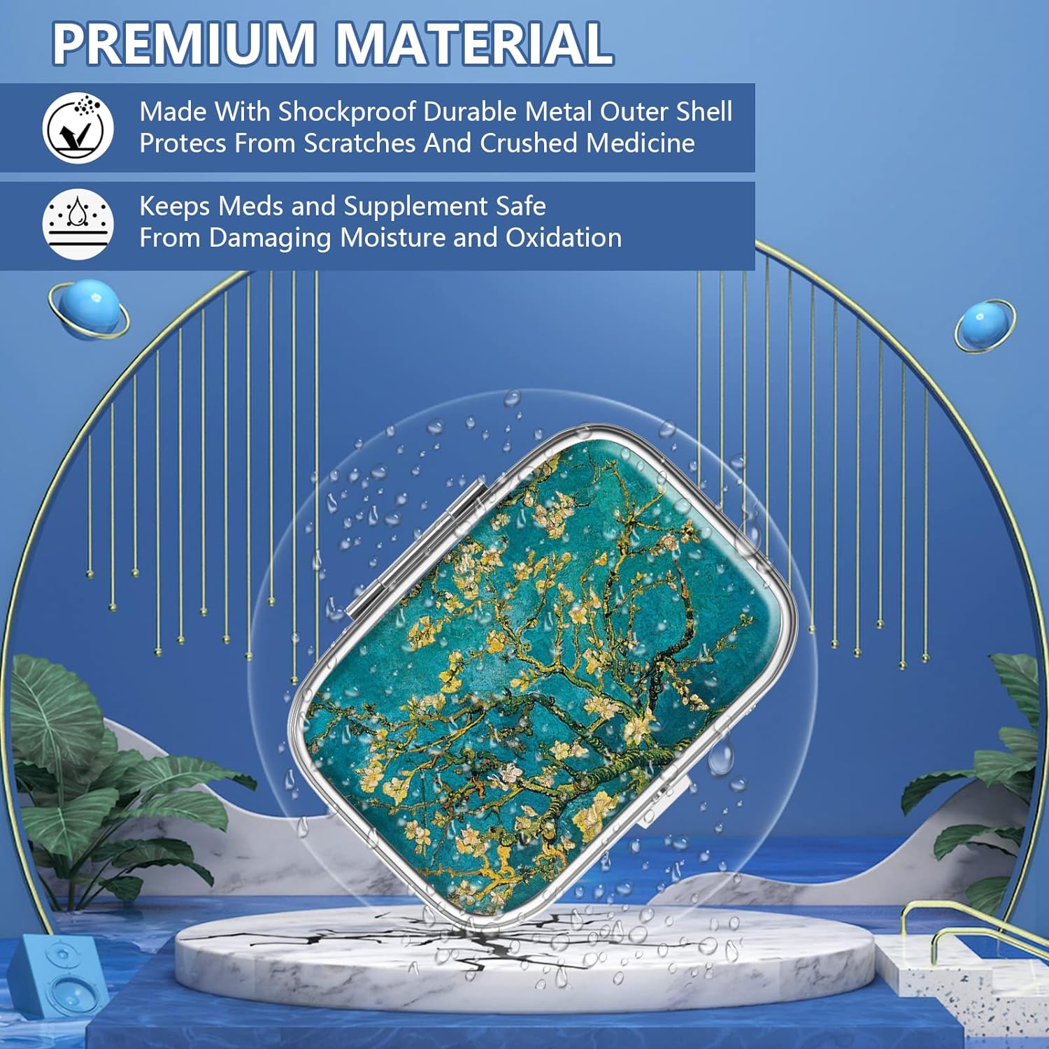 - Ideal Gift: Unique painting beautiful art pattern design can bring you a better mood when using. Not only as a practical pill organizer boxes, but also as a great decoration for your outfit, perfectly match your purses or handbags. These pill case boxes are beautifully designed and portable.They are suitable for your family and friends as holiday or birthday gifts to show your care and love