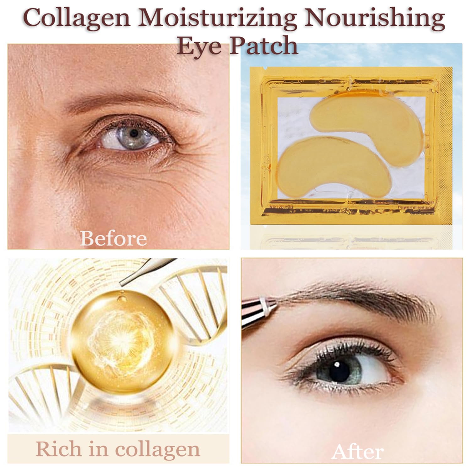 - Easy to use: Just open the package and stick it on the eye or lip area, take it off in about 15~20 minutes until fully absorbed, no need to wash. After removing the eye mask, gently massage the skin around the eyes, and the eye mask essence will be perfectly absorbed