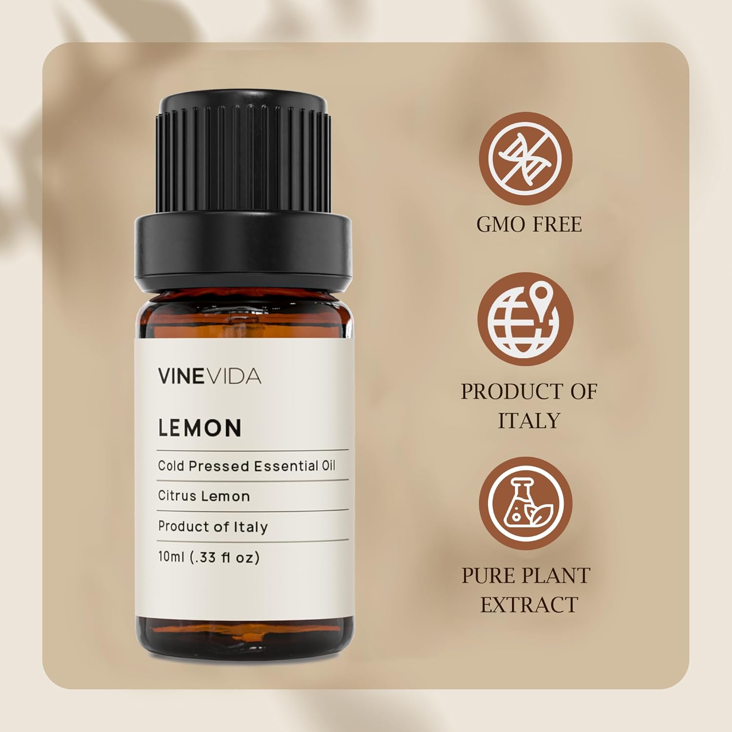VINEVIDA Lemon Essential Oil 10 mL - Undiluted for Candle Making, Soap Making, DIY Candle Scents - Safe for Skin