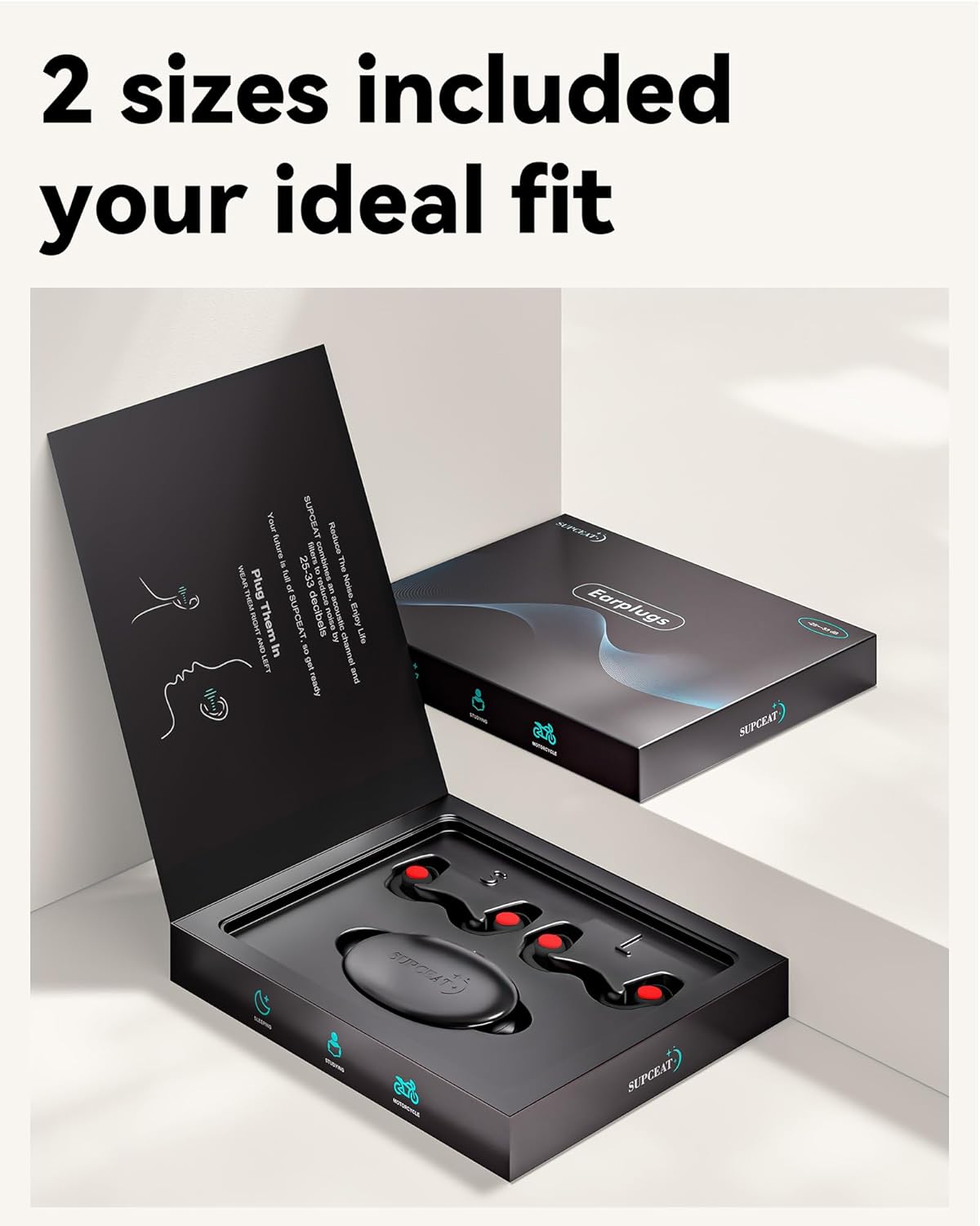 SUPCEAT Ear Plugs for Sleeping - Noise Reduction Soft Silicone Earplugs, 2 Pairs Reusable Hearing Protection Earplugs for Noise Sensitivity, Sleep,Snore,Travel,Sound Reduction Noise Cancelling - Black