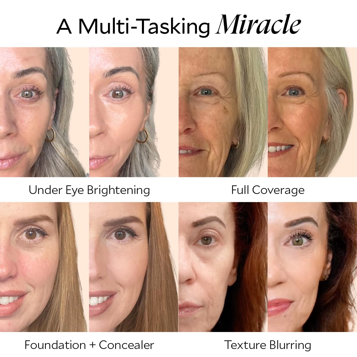- 2-In-1 Concealer - The only concealer designed for women over 40 that combines full makeup coverage with anti-aging skincare benefits. Offers all-day wear without caking or settling into fine lines. High-quality skincare ingredients visibly reduce signs of aging, promoting firmer, healthier, and brighter-looking skin over time.