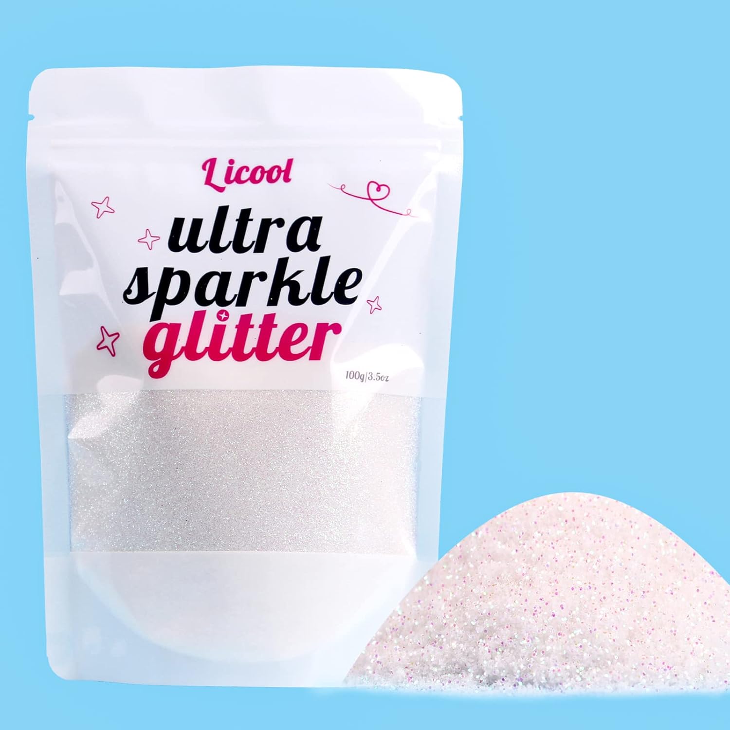 100g/3.5oz Pack Iridescent Rainbow Fine Glitter for DIY Craft, Extra Fine Glitter for Epoxy Resin, Glitter for Tumbler Candle Making, Festival Decoration Makeup Body Face Nail Art (Iridescent White)
