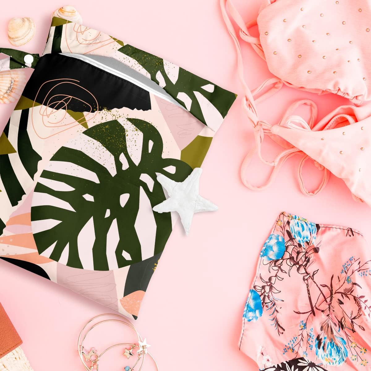 Wet Dry Bag for Swimsuit, Travel, Beach, Pool, Stroller, Diapers, Dirty Yoga Gym Clothes, Makeup Bag, Waterproof Tropical Palm Leaves Decor Jungle Palm Leaf Favors