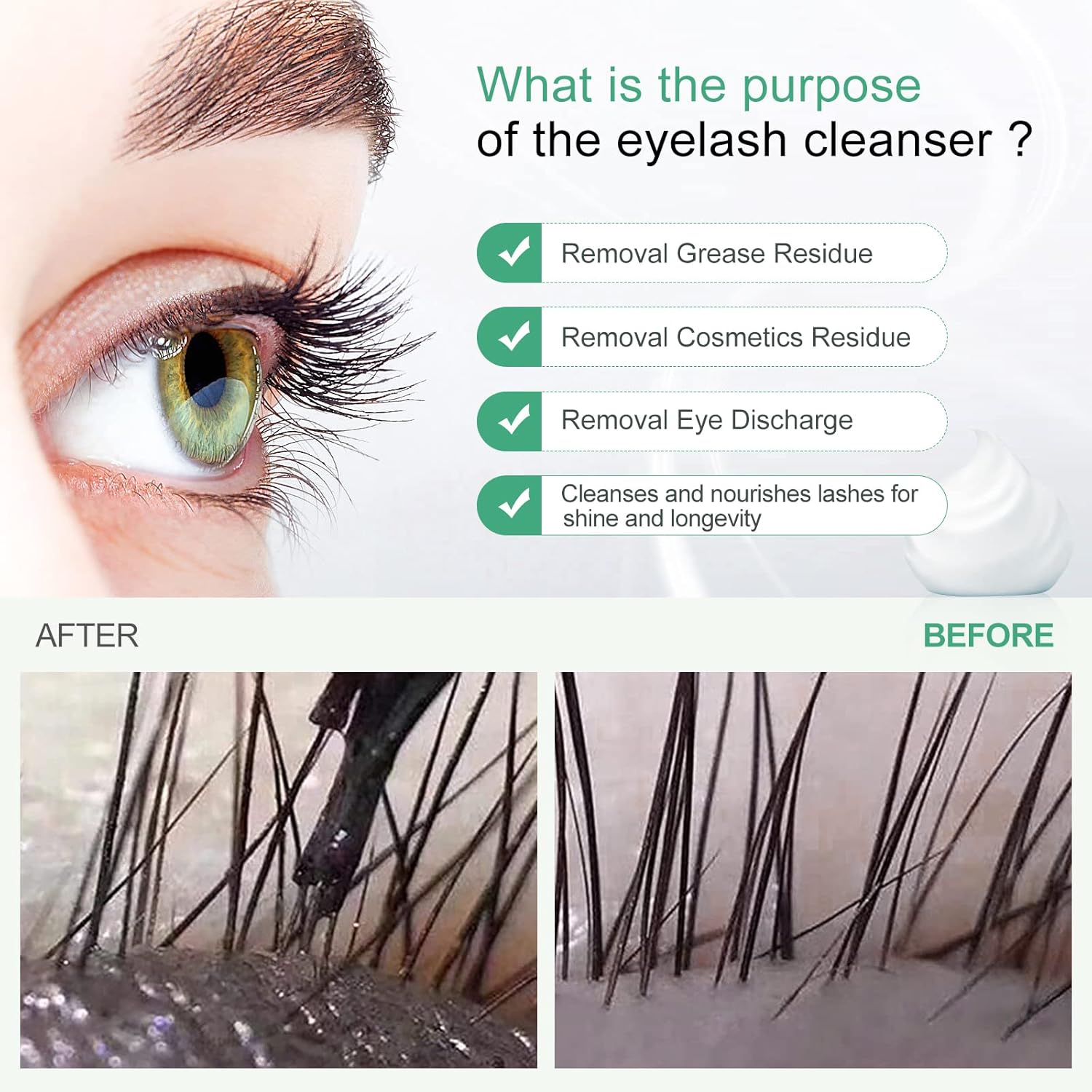 - Our eyelash shampoo for lash extensions aims to create the top brand of eyelash cleaning concentrate used in professional grade salons, excellent quality and price is our action, attentive and professional service is our guarantee, if you have any questions about the product, you can consult us, we guarantee that we will give you a reply within 24 hours!