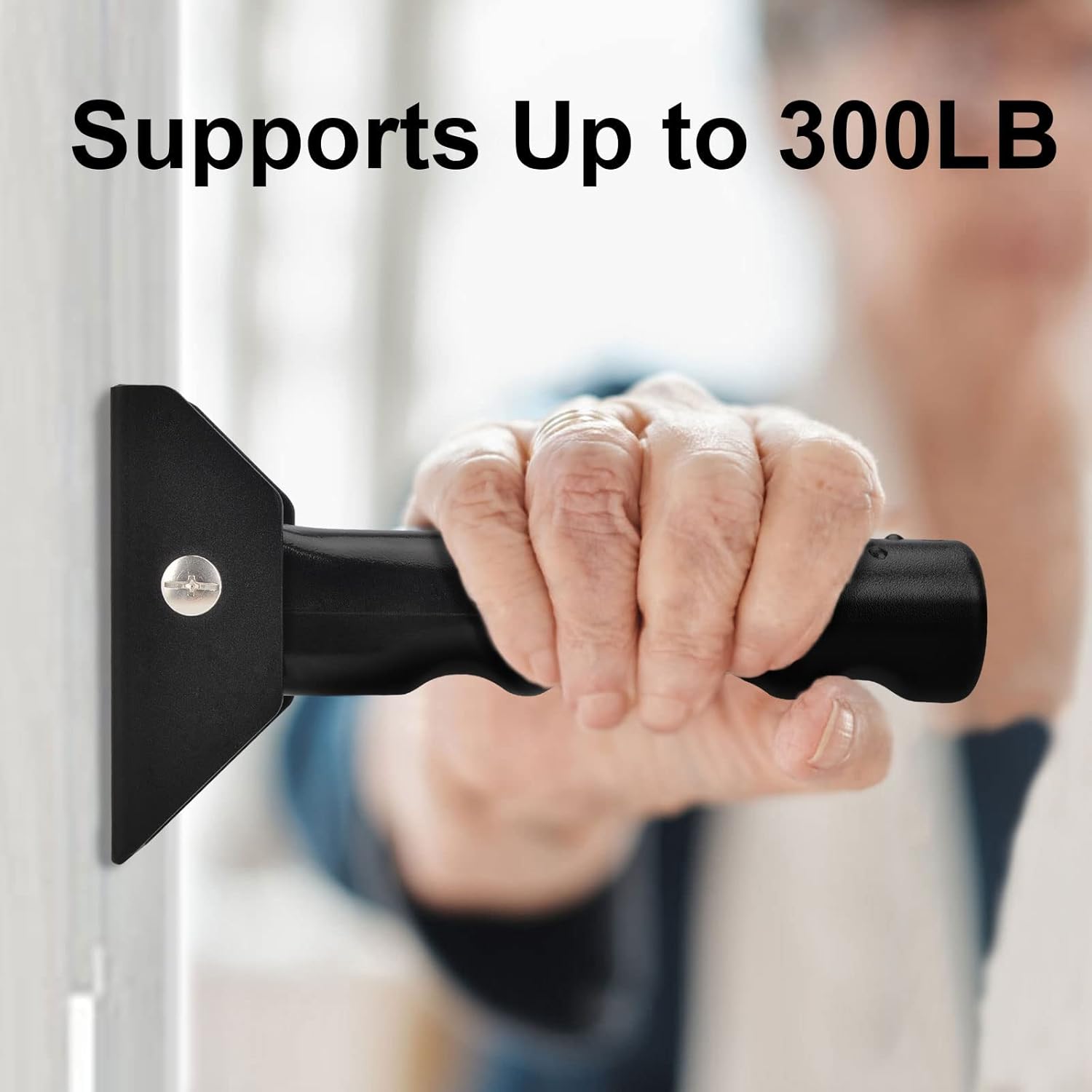 - Lengthened Stair Grip Bars: This doorway flip assist handle entry help upgraded with longer handle in 5", provide users more security and convenient when using. The folding grab handles for elderly outside door support up to 300 Pounds.