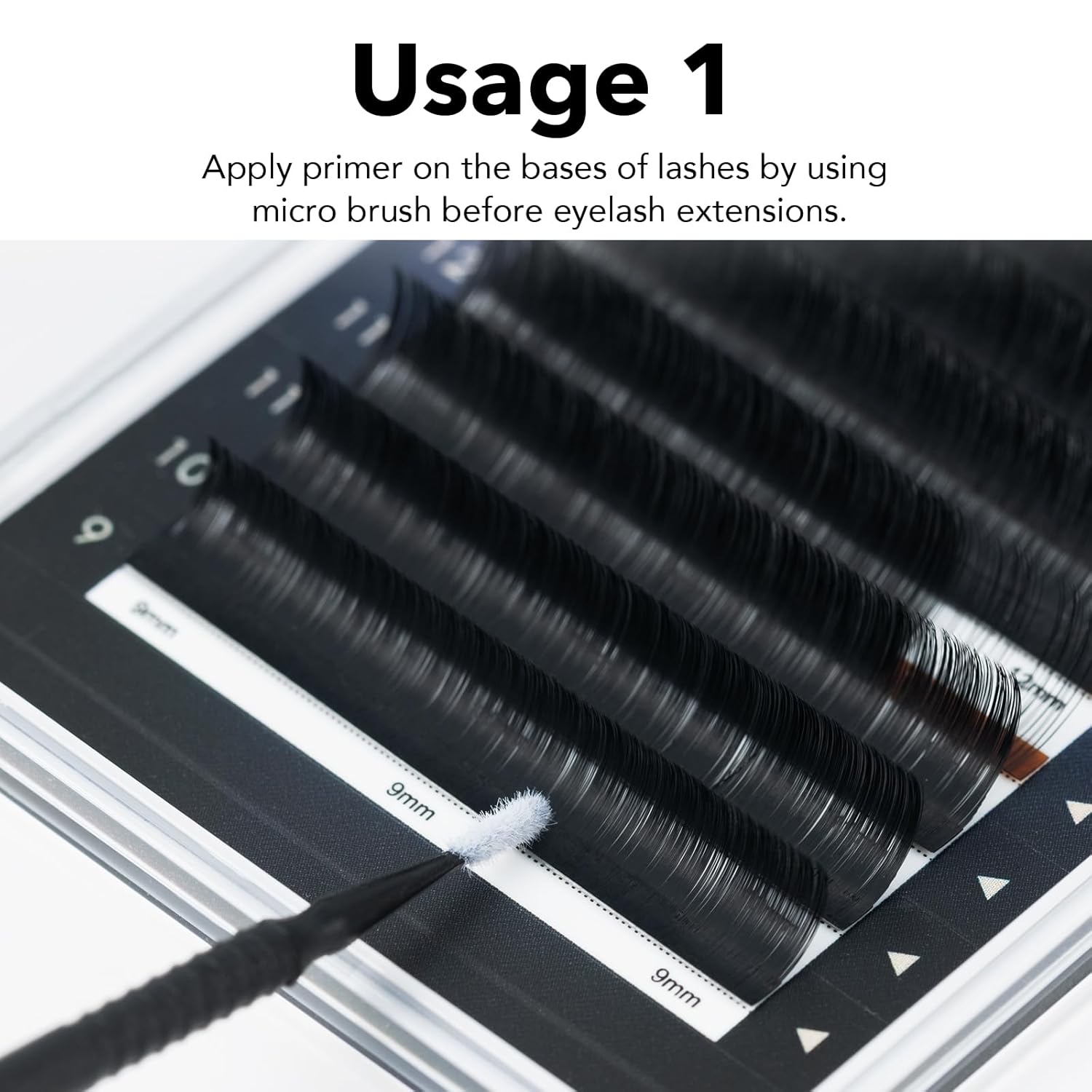 - ✅ HOW TO USE - Method1.Use a cotton swab to dip an appropriate amount of lash extension primer and apply it to the root of the grafted eyelashes (one third of the place); Method2:Before eyelash extension, use a cotton swab to dip an appropriate amount of eyelash primer, directly apply on customer's own eyelashes to remove excess moisture from eyelashes and oil, increase the adhesion of eyelash grafting glue.