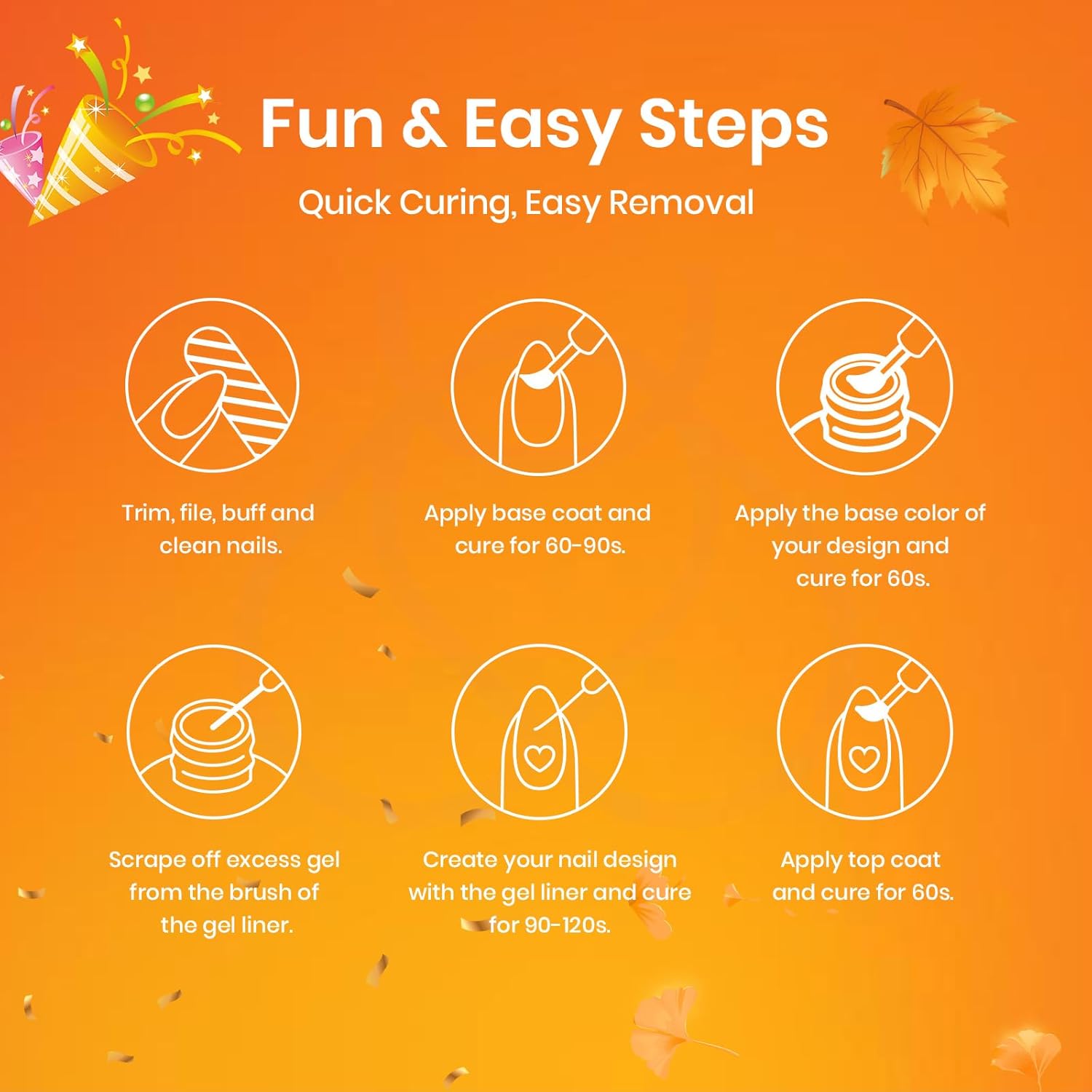 - Gel Liner Nail Polish: Beetles nail art design with beautiful colors can make French nails, coffee nails, chocolate-glazed donut nails, and so on. The 20pcs gel paint for nail art offers a variety of bright and dreamy shades. Giving you a more comfortable home nail art experience.