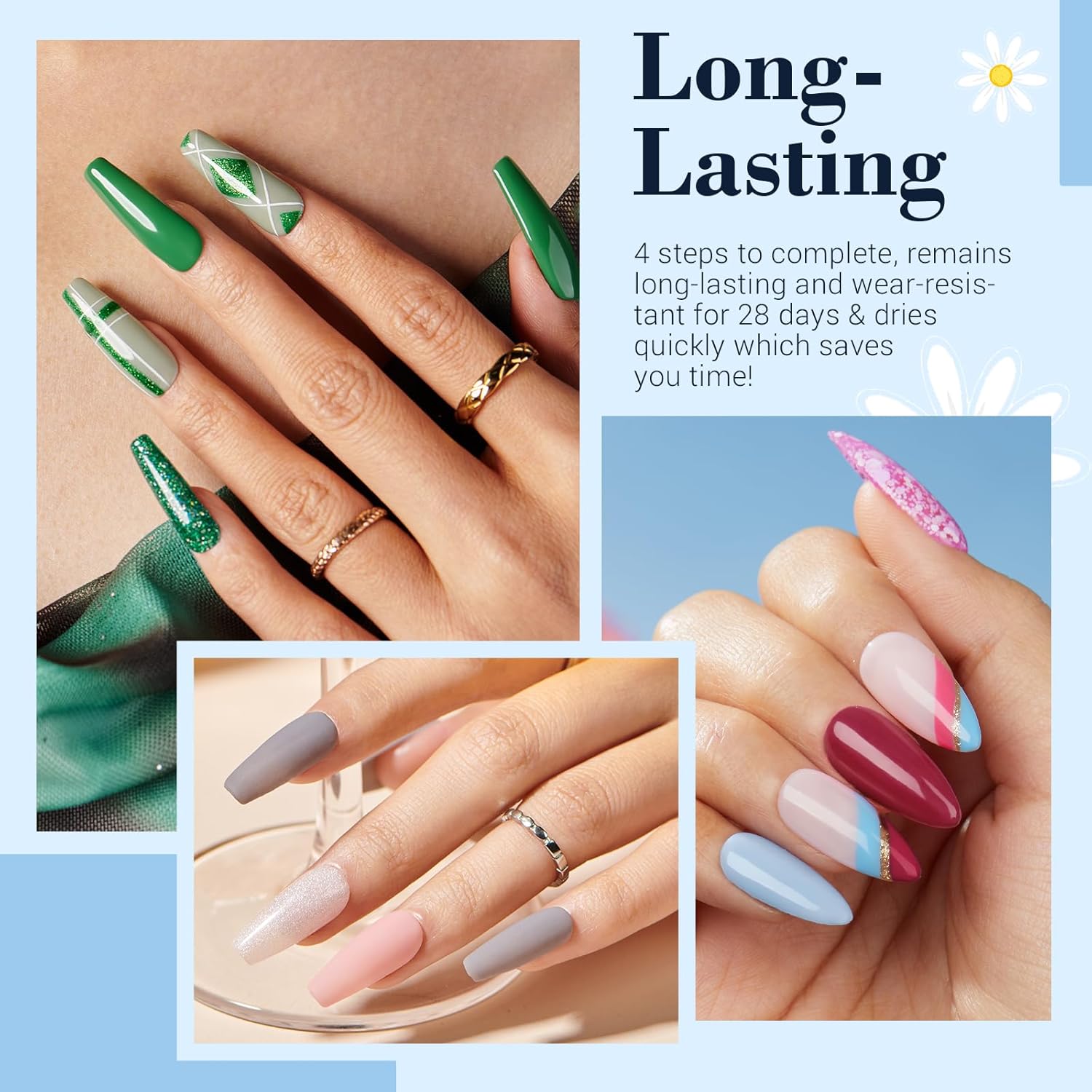 - 【Superior Quality & Long Lasting】 AZUREBEAUTY dip nail kit is long-lasting and anti-chipping, anti-peel off. The color is full and natural-looking, light, and has an impeccable shine finish. It can keep the nail art gorgeous and shiny for more than about 28 days with proper application. This makes it the first choice for busy people. (REMINDER: The affection of dip powder may show differently in different people, 2~3 base coats while using will be the best.)
