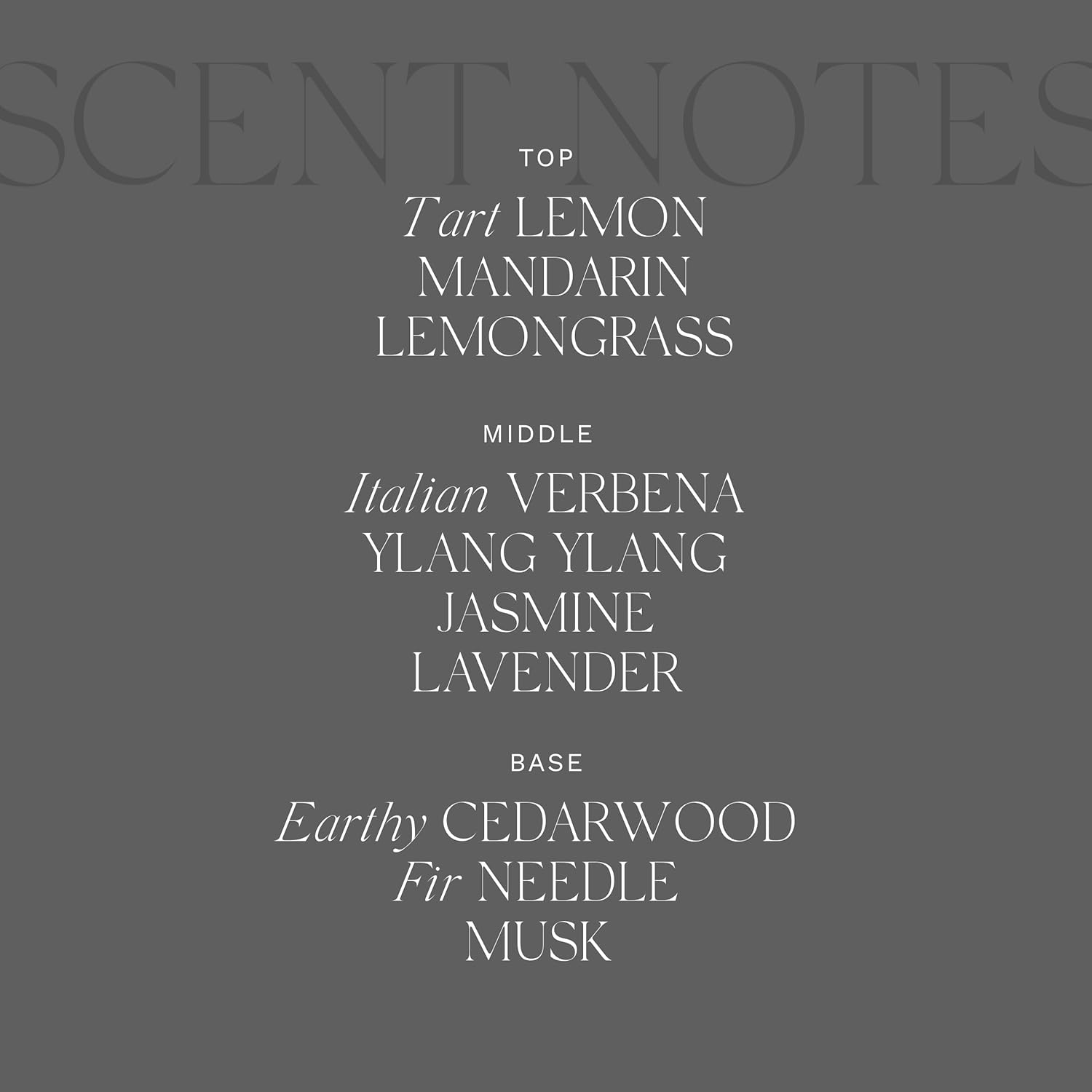 - Lemone Verbena e Cedro Invigorating notes of tart lemon orange and lemongrass mingle with notes of fresh Italian verbena
