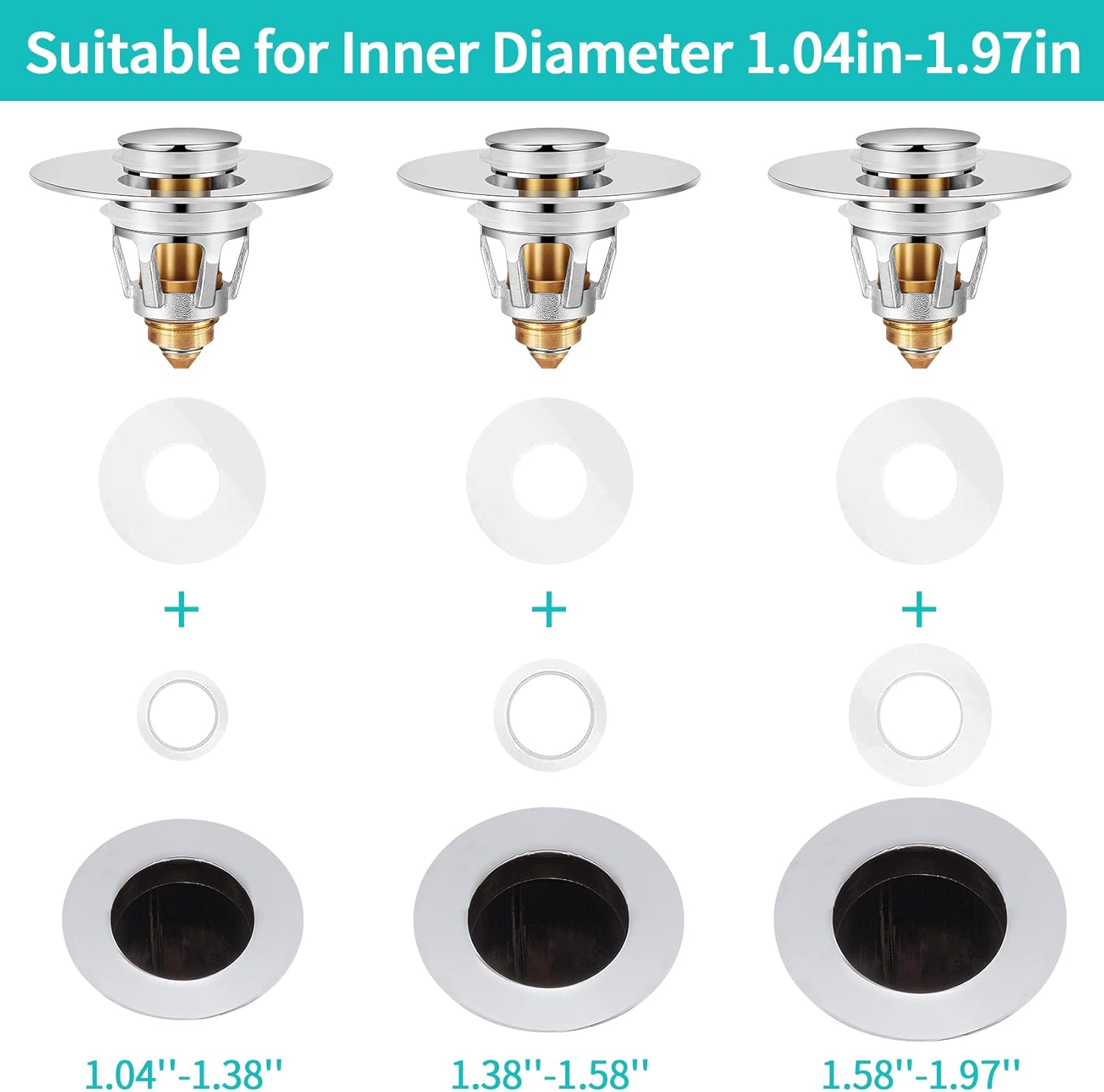 - [ Easy to Install ] No tools are needed, it can be installed easily with bare hands. You just take out the old bounce core and install a new bounce core. Anyone can install the pop-up drain because of its simple structure. If you want to use it for a larger sink hole diameter, you can use the rubber ring we included to increase the inner diameter of the sink plug.