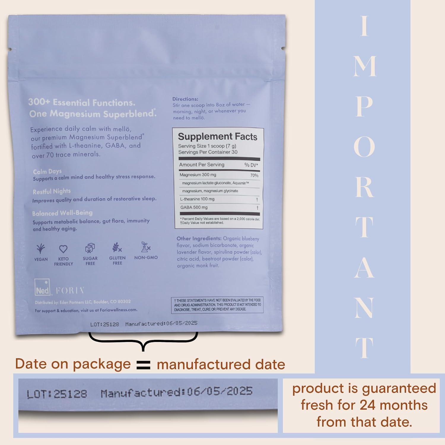 - Designed for Daily Rituals: Our full-size pouch is ideal for building consistent habits at home; Enjoy mellö nightly as a calming addition to your wind-down routine or anytime you need full-body support and a gentle mental reset; Contains 30 servings