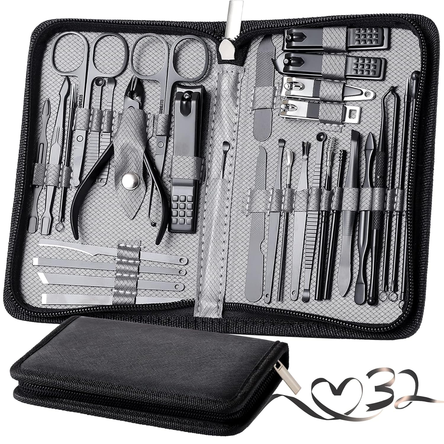 Manicure Set Pedicure Kit Womens Nail Clippers Set 32 in 1 Professional Grooming Care Tools Nail Kit Including Facial, Fingernails and Toenails Care with Travel Case Women (Gray_32 in 1)