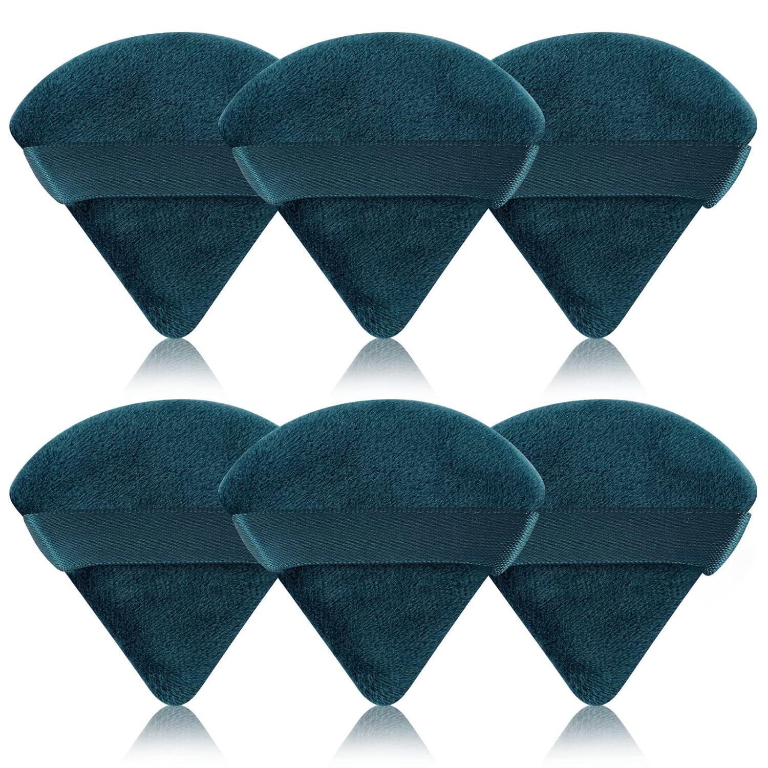 Pimoys 6 Pieces Powder Puff Face Soft Triangle Makeup Puff for Loose Powder Body Powder, Cosmetic Foundation Sponge Velour Setting Powder Puff(Peacock Blue)
