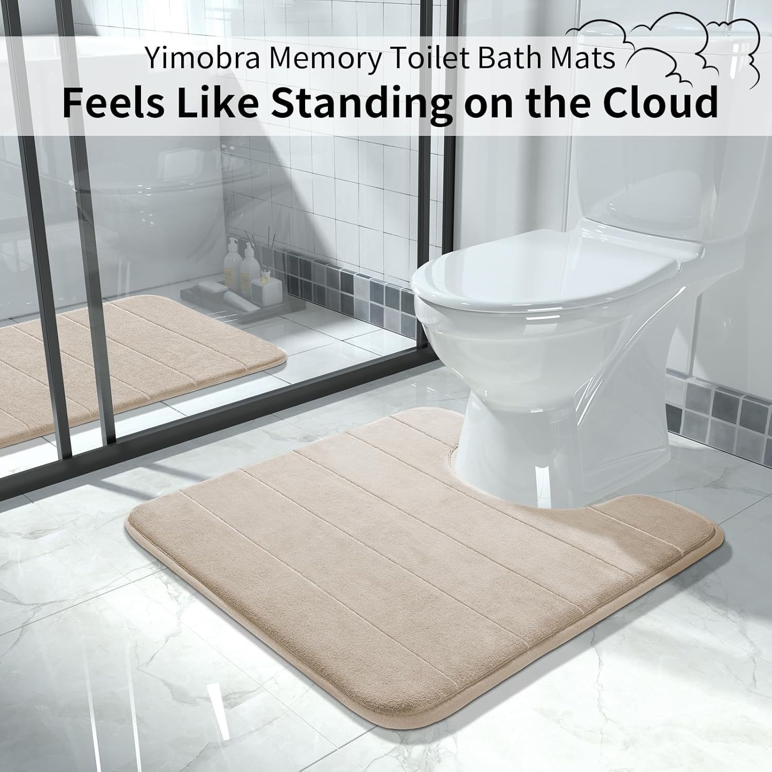Yimobra Memory Foam Toilet Bath Mat U-Shaped, Soft and Comfortable, Super Water Absorption, Non-Slip, Thick, Machine Wash and Easier to Dry for Bathroom Commode Contour Rug, 24 X 24 Inches, Beige