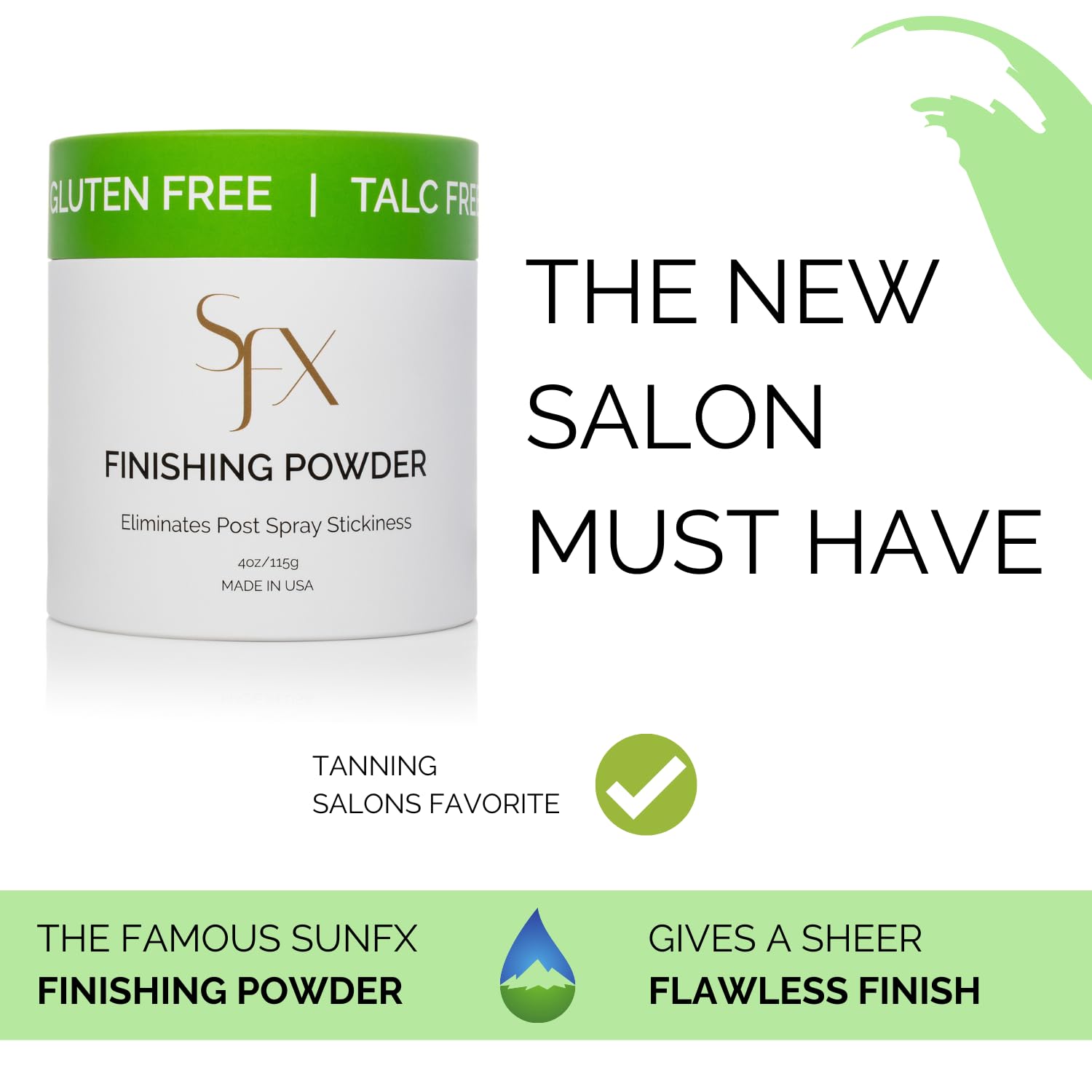 - WHAT DOES OUR FINISHING POWDER DO: Removes post spray tan tack and helps with any post tan odor. Our subtle bronzed translucent light powder provides a sheer flawless finish that doesn’t clog pores