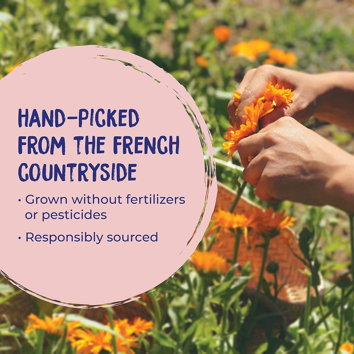 - [HAND-PICKED CALENDULA FLOWERS] Calendula, also known as the garden marigold has been used for generations to naturally soothe and repair irritated and damaged skin; our calendula blossoms are hand-picked from the French countryside, untouched by pesticides or fertilizers